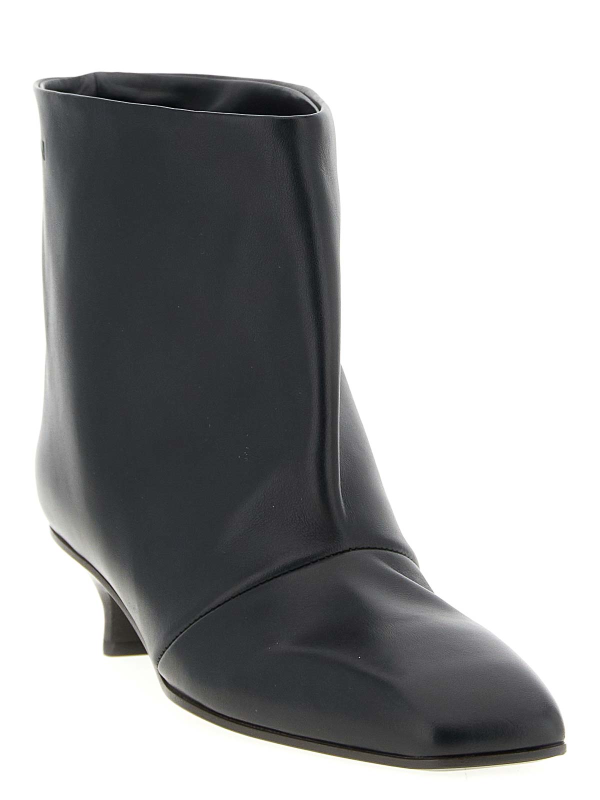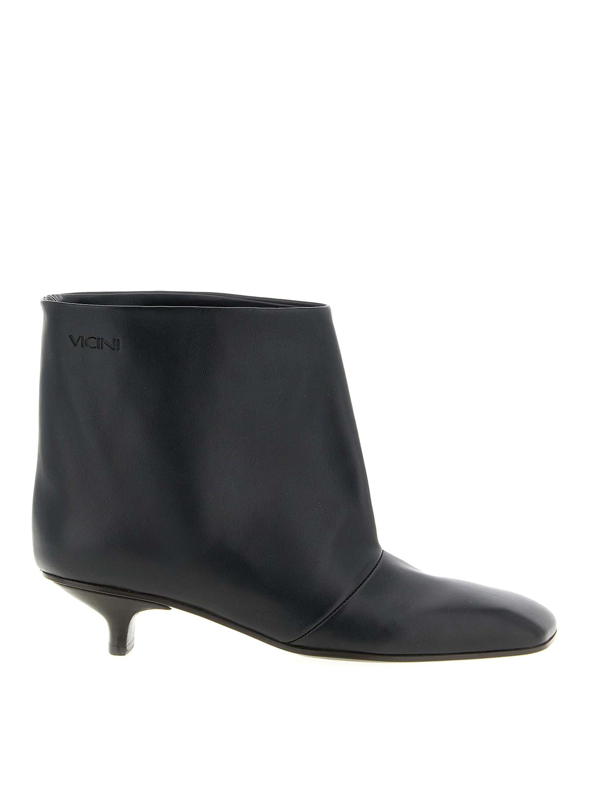 スクエアトウ、スリッポンスタイル、チューブレッグ、ヒール、レザーソールを備えたCizin'レザーアンクルブーツ。