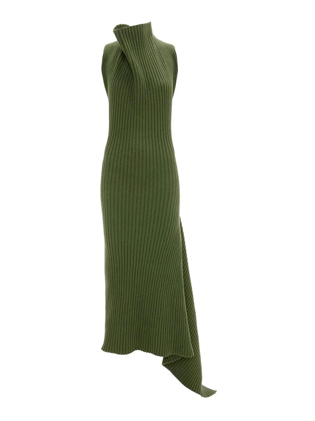 チャンキーリブステッチドレープカウルネックラインアシンメトリーヘム