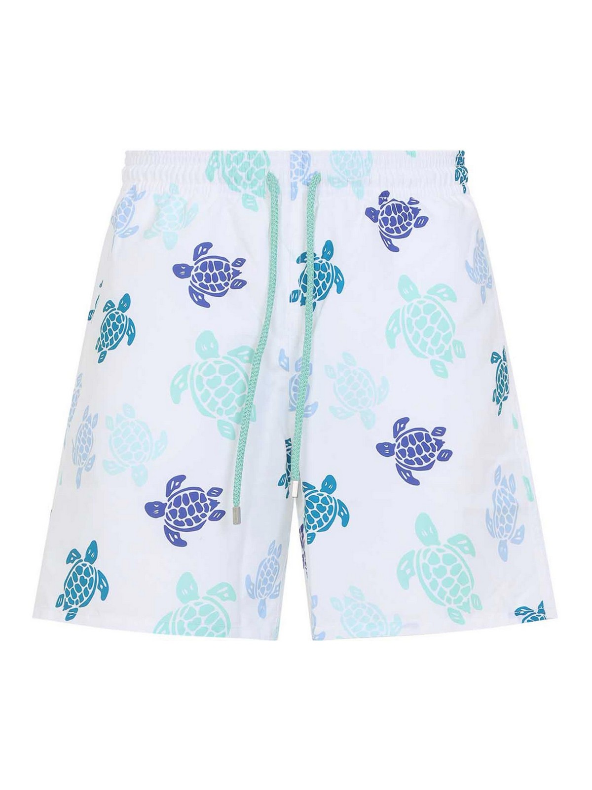 Vilebrequin moorea ホワイトリサイクルポリエステルスイムショーツ。全体にカメのモチーフをあしらったホワイトテックファブリック製で、ドローストリング付きの伸縮性ウエストバンド、サイドポケット2つ、ベルクロフラップ付きのバックポケット1つ、バックアイレット2つが特徴です。サイズ通りにフィットし、レギュラーフィットです。