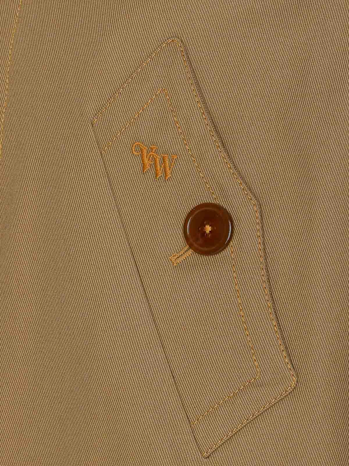 キャメルカットグラツィアーノトレンチコートフロントボタン付き襟フック付き長袖補強ショルダーポケット袖口にボタンストラップ付きクロップモデルパッド入り