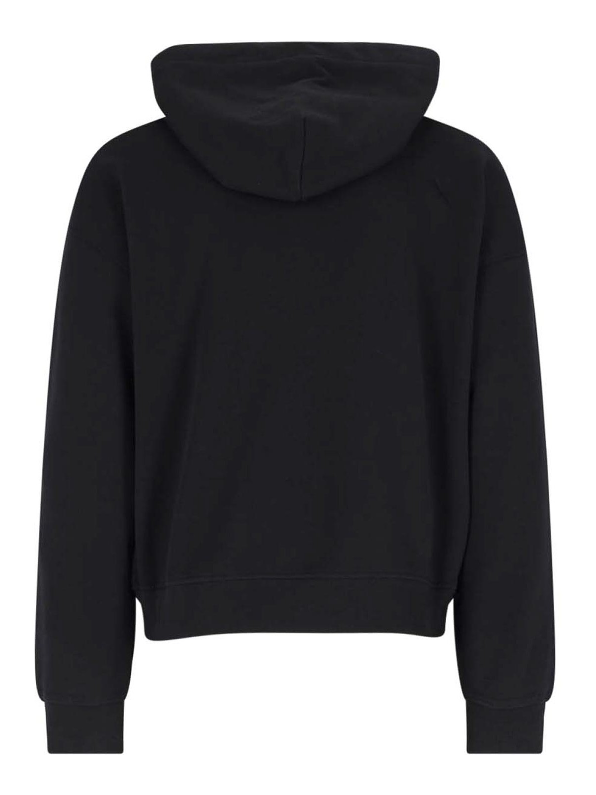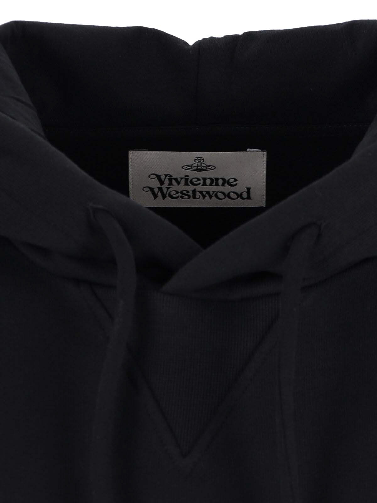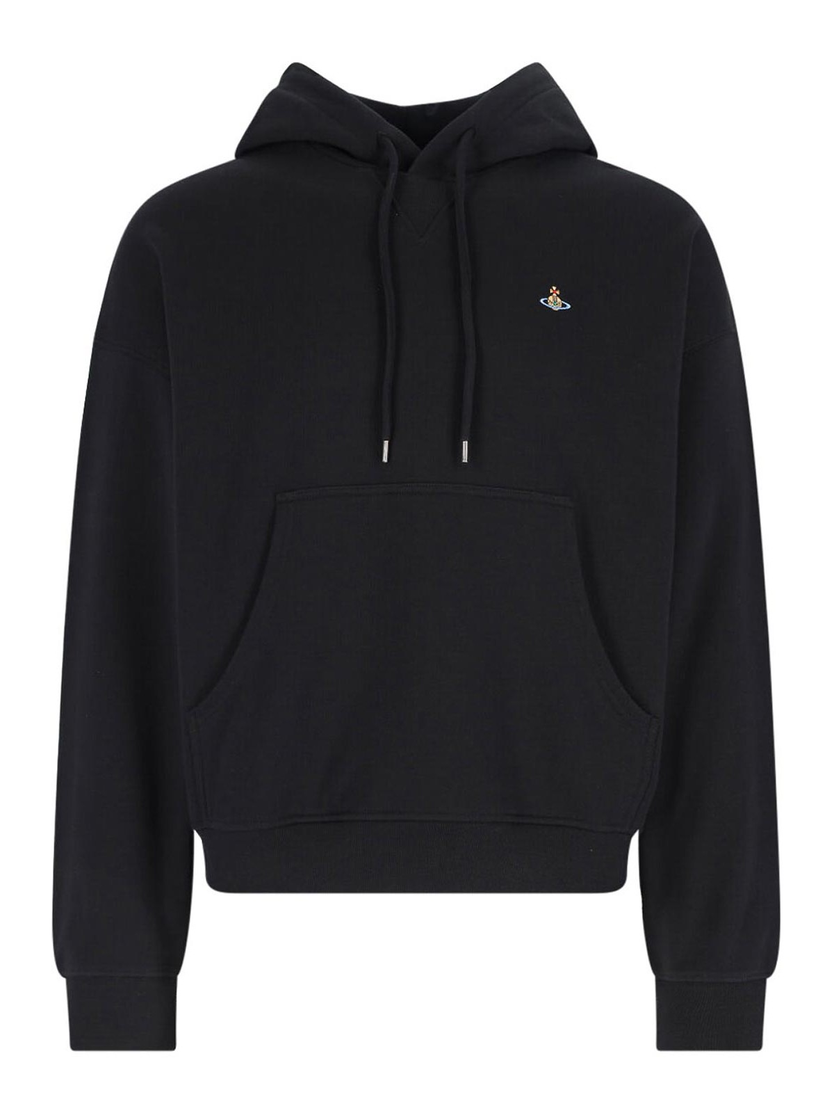 フード付きスウェットシャツ ORB Vivienne Westwood Black Hooding coulisse マルチカラーロゴ Pet Cibsの前面にマキシポケットがあり、ストレートエッジで仕上げています