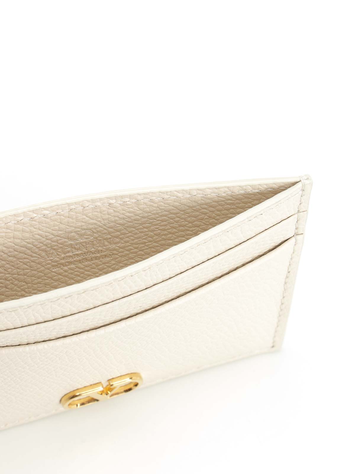 Valentino Garavani Vlogoシグネチャーカードホルダー。木目調で、アンティーク仕上げのロゴ、4つのカードスロット、中央ポケットが特徴です。