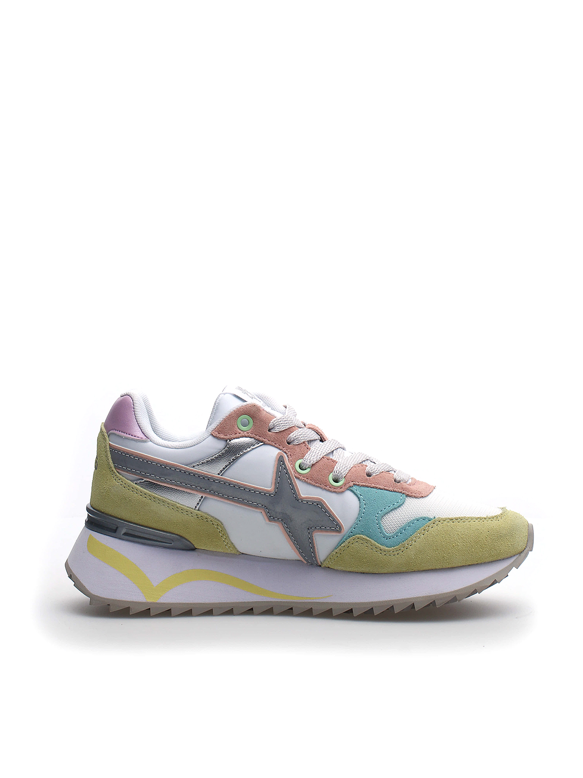 テクニカルスエードとレザーを使用したW6YZスニーカー。コントラストカラーのディテールが施され、エッジがプリントされた超軽量メタルアイレットとカスタマイズされたトレッドが特徴です。