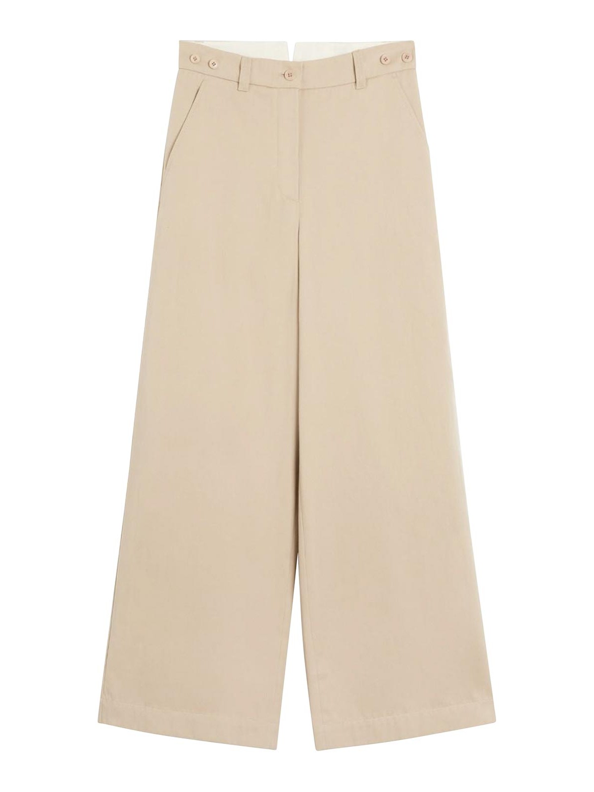 大麦パンツ、綿 100%、パンタロンはボタンで装飾され、生活には4つの穴が開いており、背中の中央には小さなV字型カットが施されています。