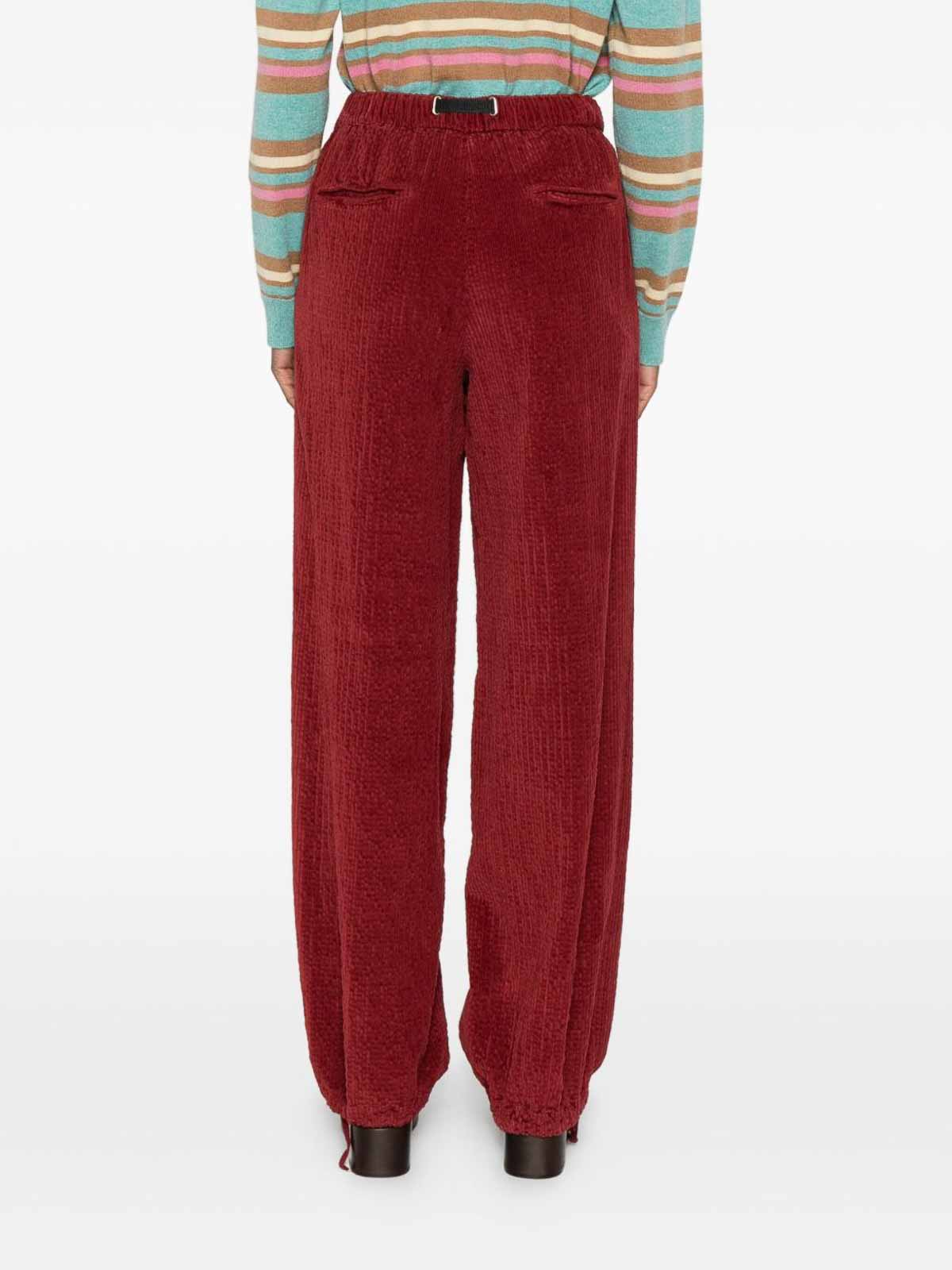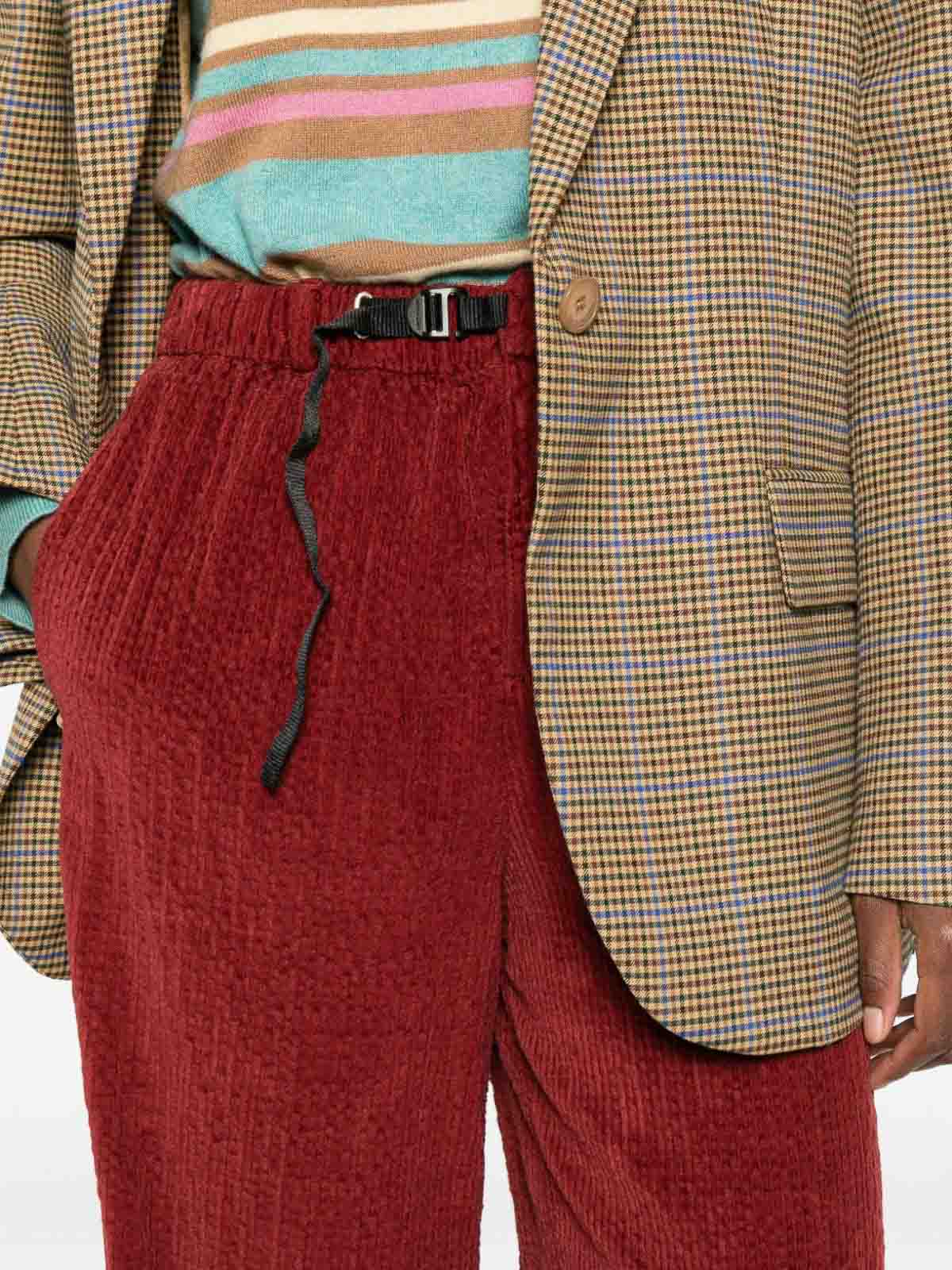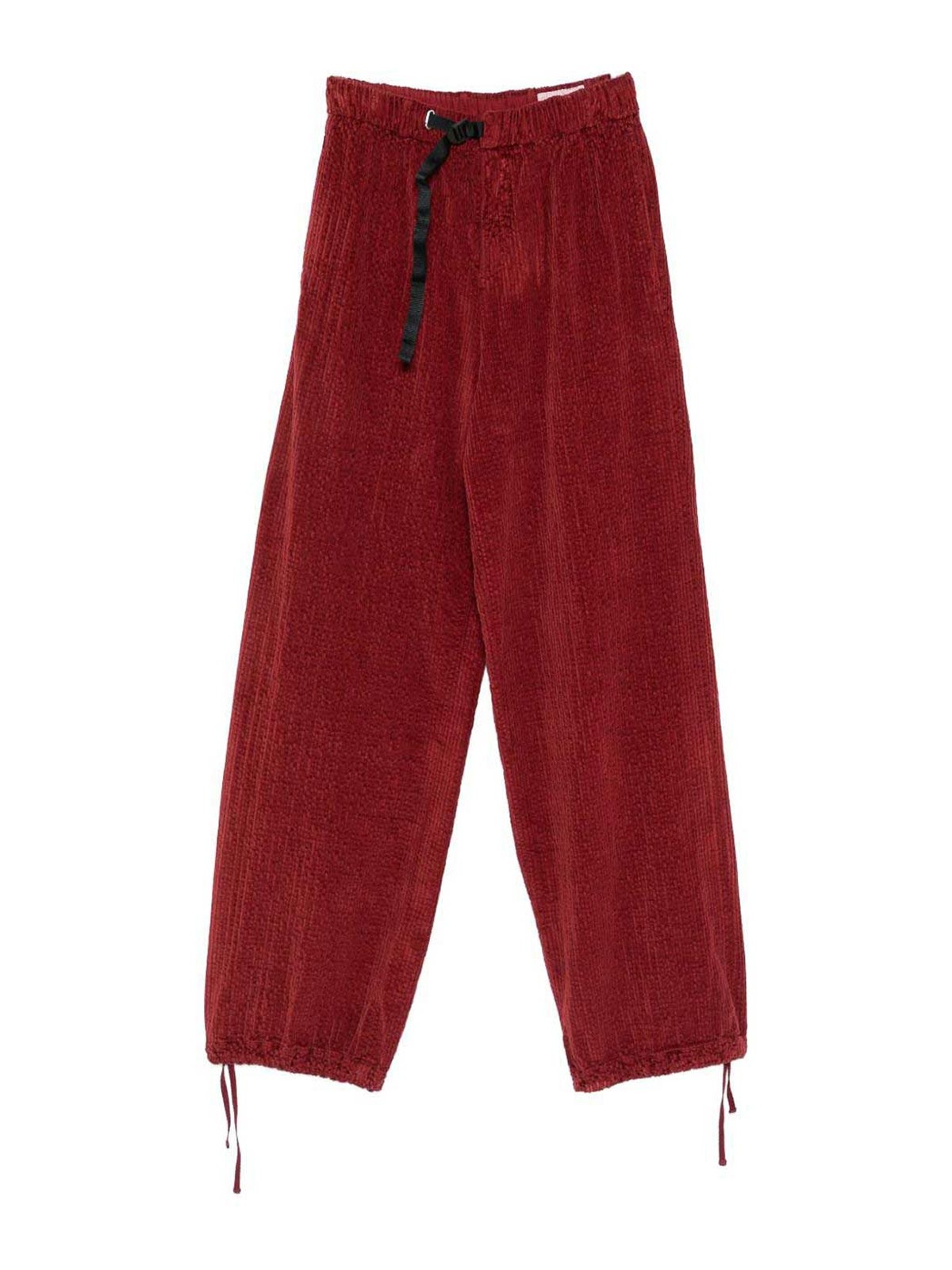 レッドコーデュロイテクスチャードドローストリングウエストバンドカフ付きヘムサイドポケット