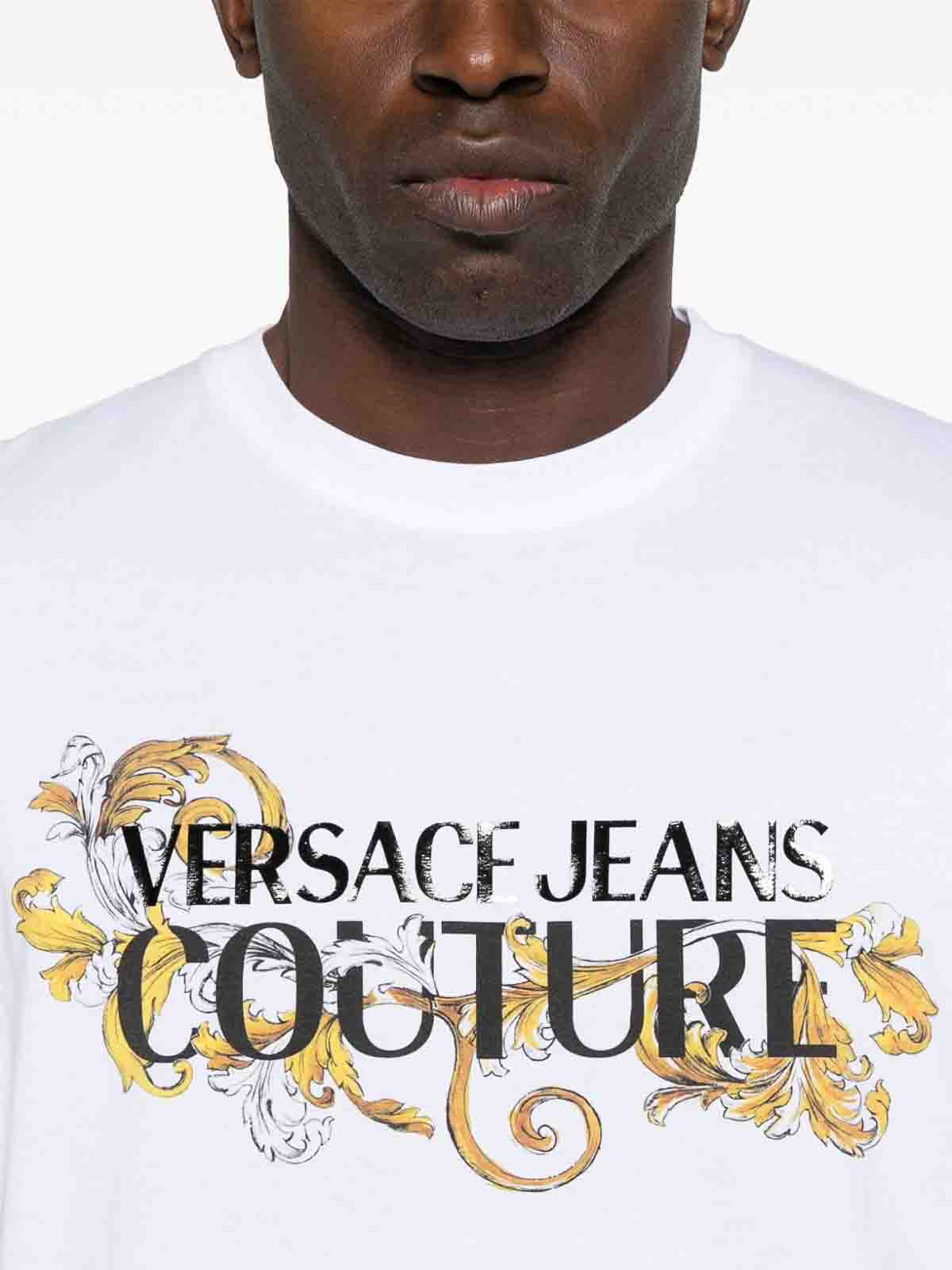 Versace ジーンズクチュール、Tシャツ、ロゴ入りシャツ、白、黒、ロゴ入り、半袖、男性用