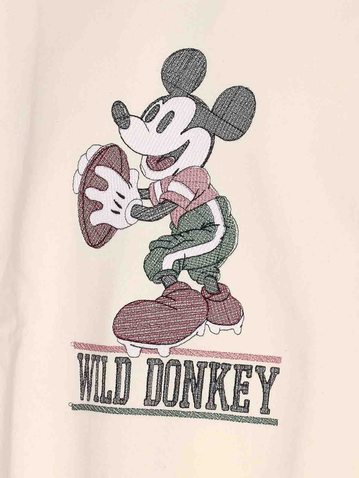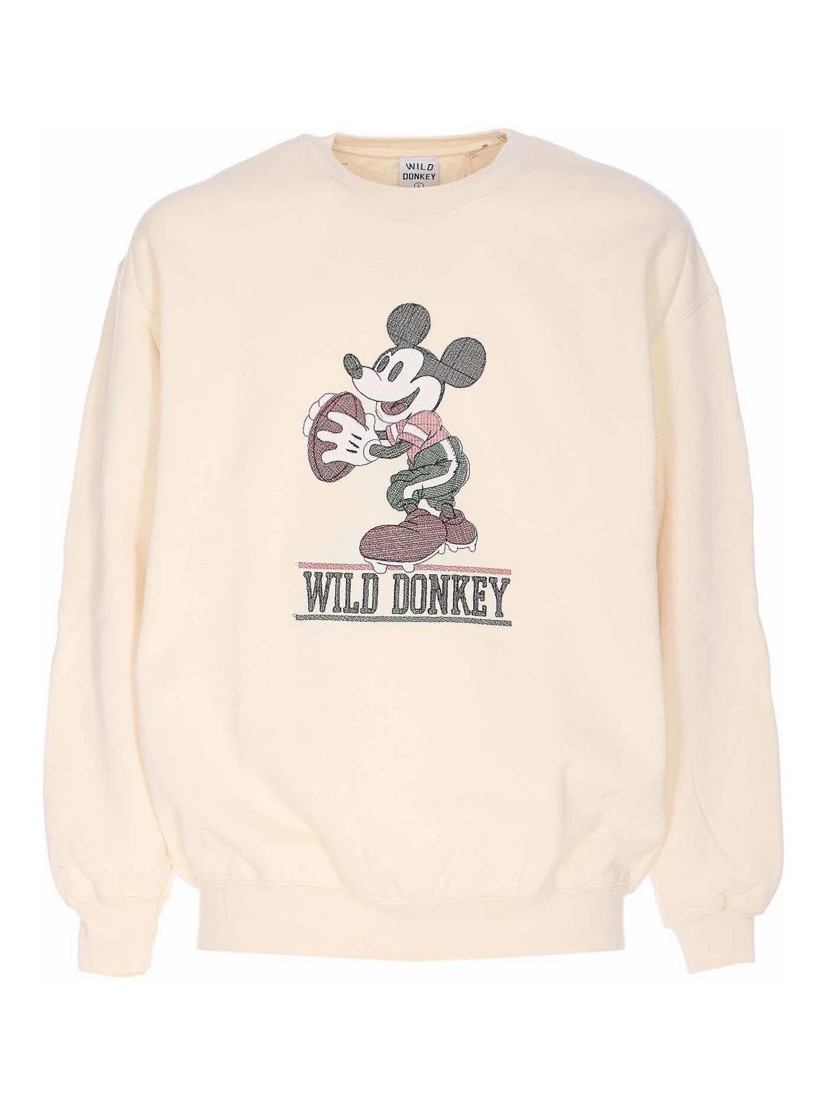 ワイルドドンキーホワイトマイキーフットボールスウェットシャツ、クルーネック、長袖、前面にロゴ刺繍