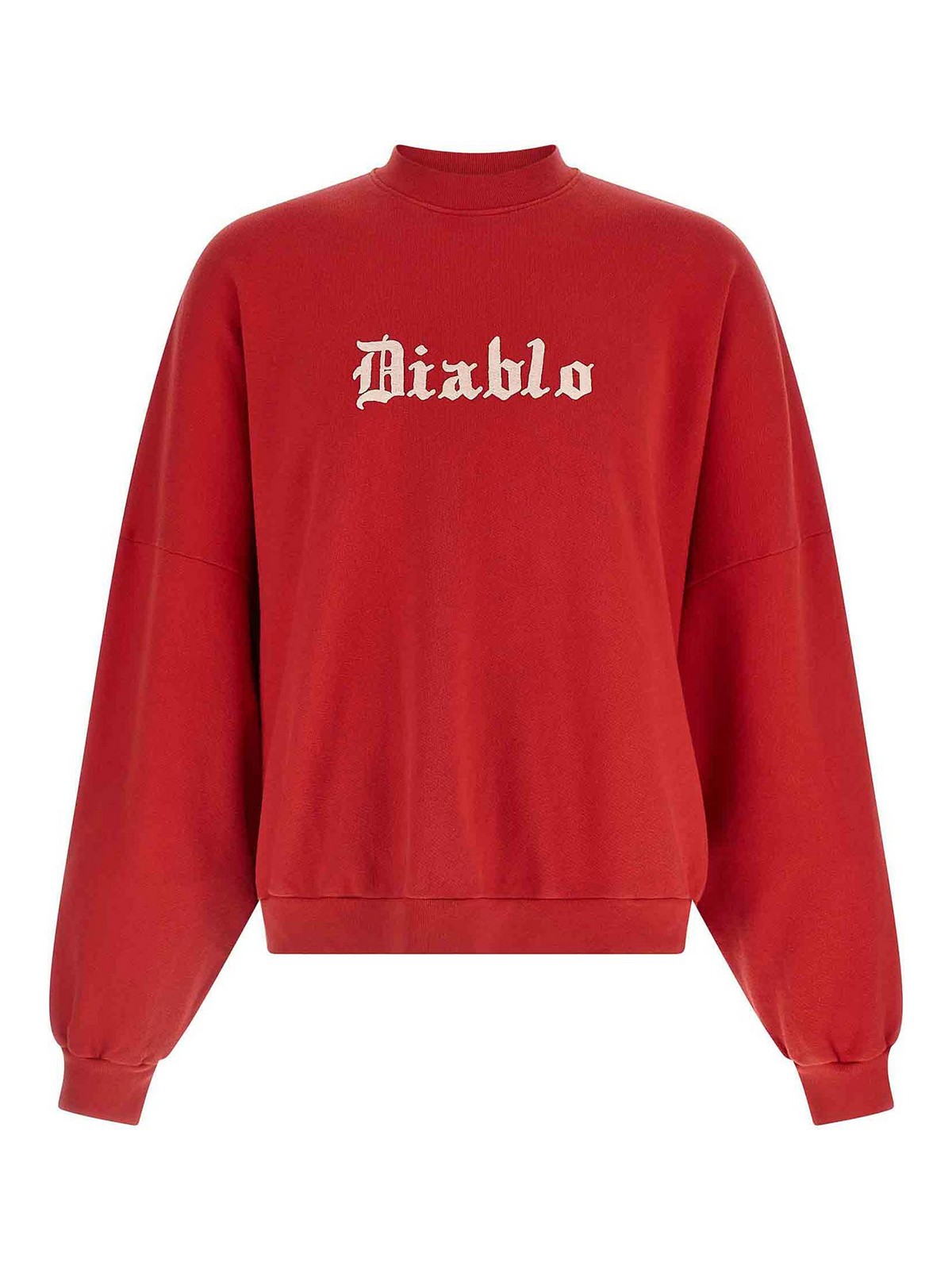 ヴィンテージウォッシュ加工を施した起毛コットンの「ディアブロフーリガン」スウェットシャツ、前面に3Dウォッシュ加工のセリグラフプリント、クルーネック、ロングカフスリーブ、ドロップショルダー。