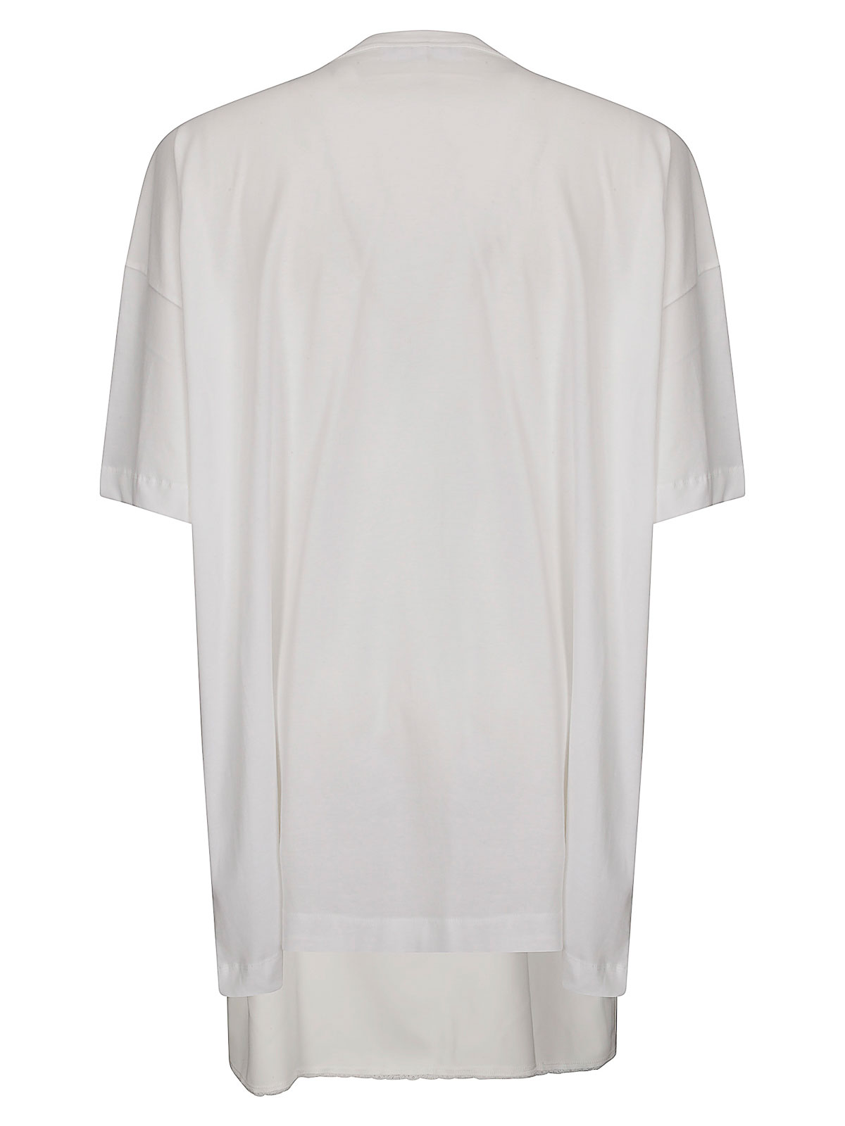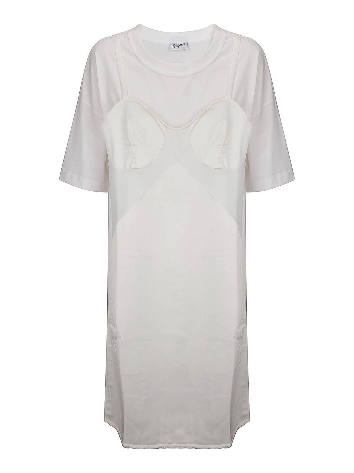 クルーネックTシャツ、半袖、ショルダーパッドとブラカップ付きの縫製ドレスと重ね着、ルーズフィット。