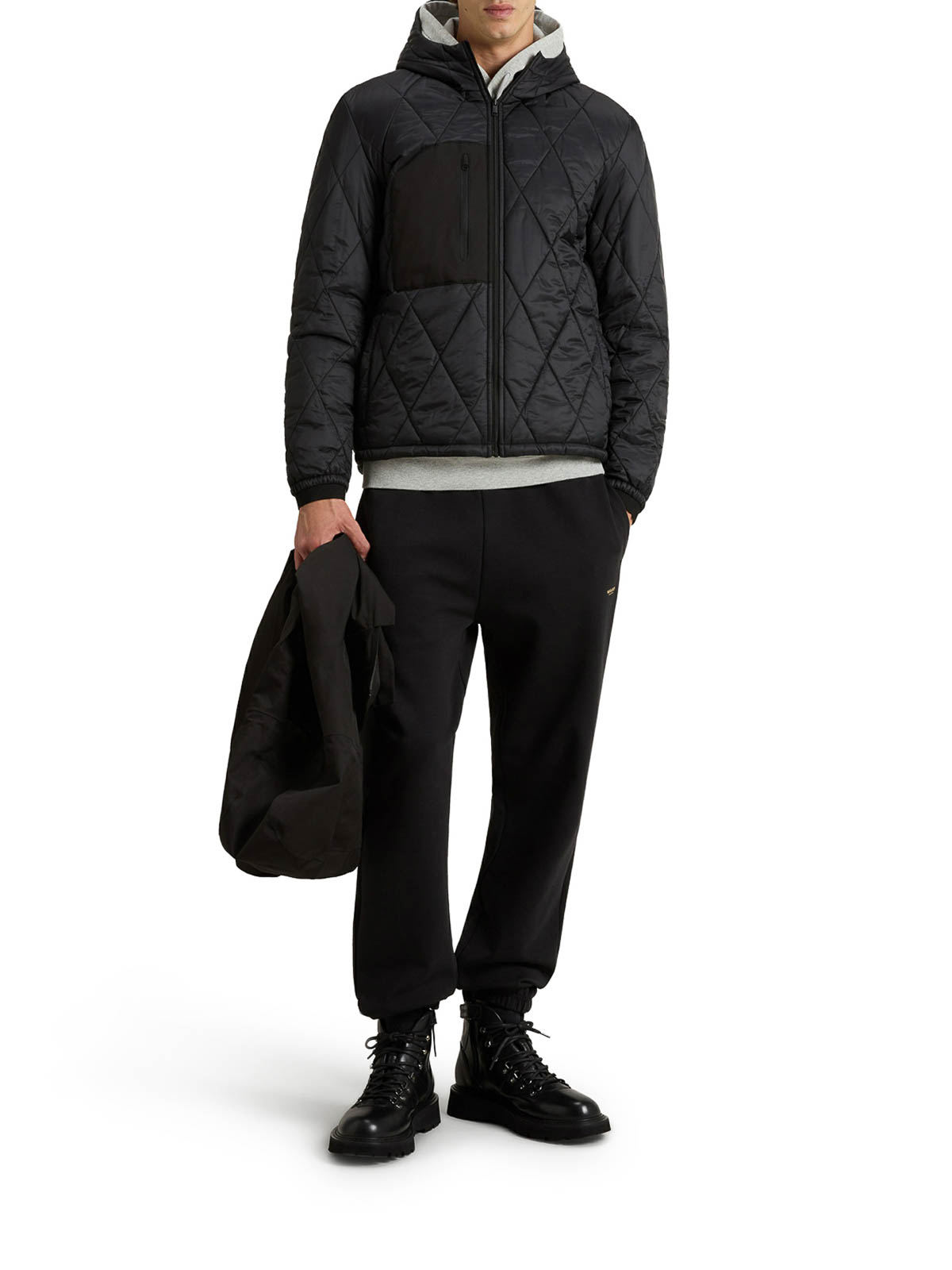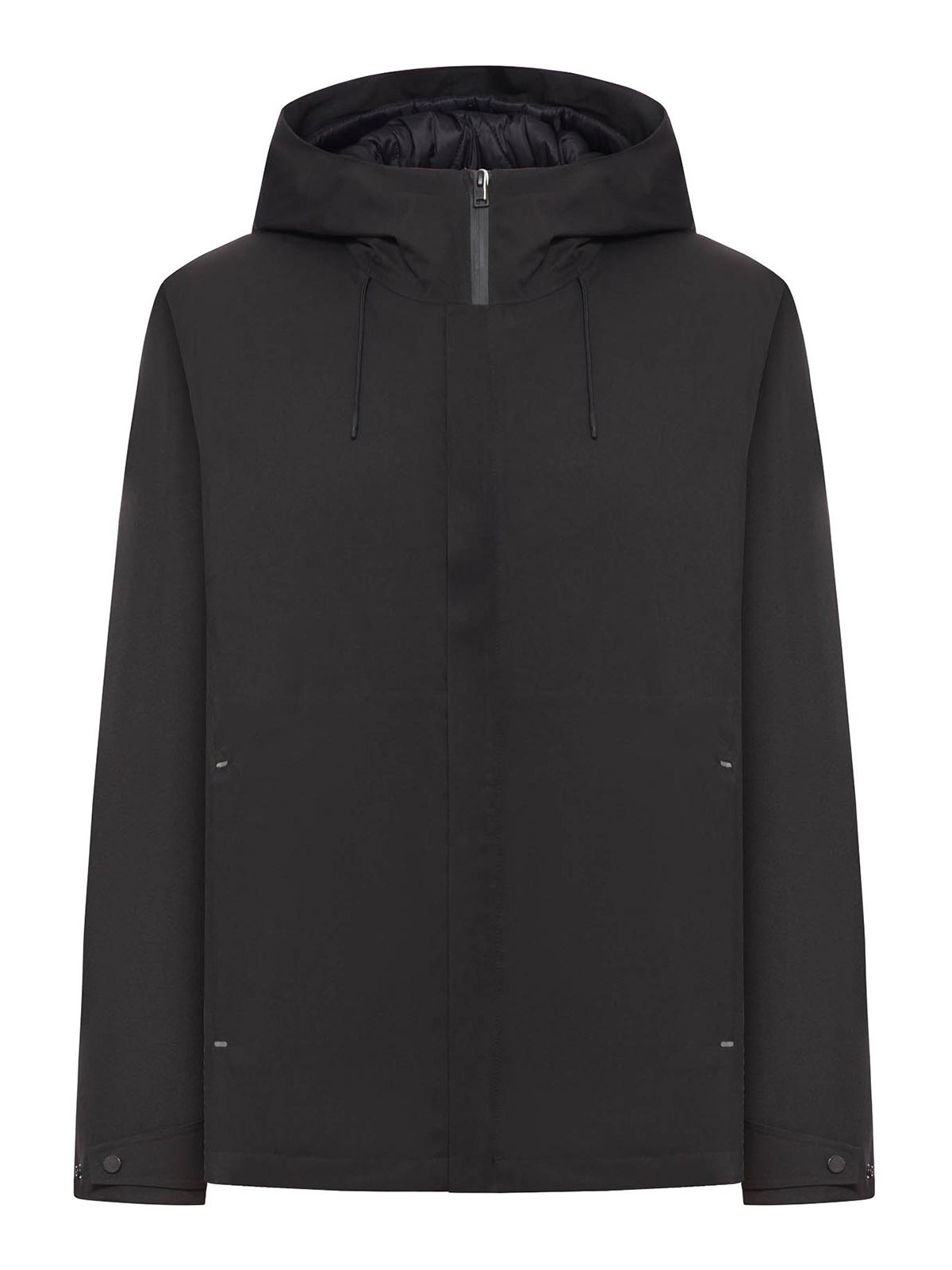 レイヤーツイル、防水、防風、通気性に優れ、縫い目を部分的にテープで留めたデザイン、調節可能なフード、部分的にフラップで覆われた防水2ウェイジッパー、暗闇での視認性を高めるジッパー付きポケット、調節可能なスナップ、ボタンカフ、フードピークとフラップの底に反射ロゴ、サイドラベル、取り外し可能なジャケット、G、キール付きリバーシブルサイドとプレーンサイド、フード、キルト側にウェルトポケット、キルト側にジッパーポケット、デザイナーカラー名:ブラック
