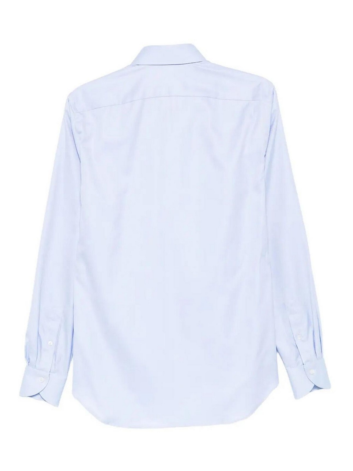 トーマス・メイソンのドビー生地を使用した長袖シャツ。仕立てに細心の注意を払って作られています。スカイブルーは衣類に新鮮さと明るさを与えます。