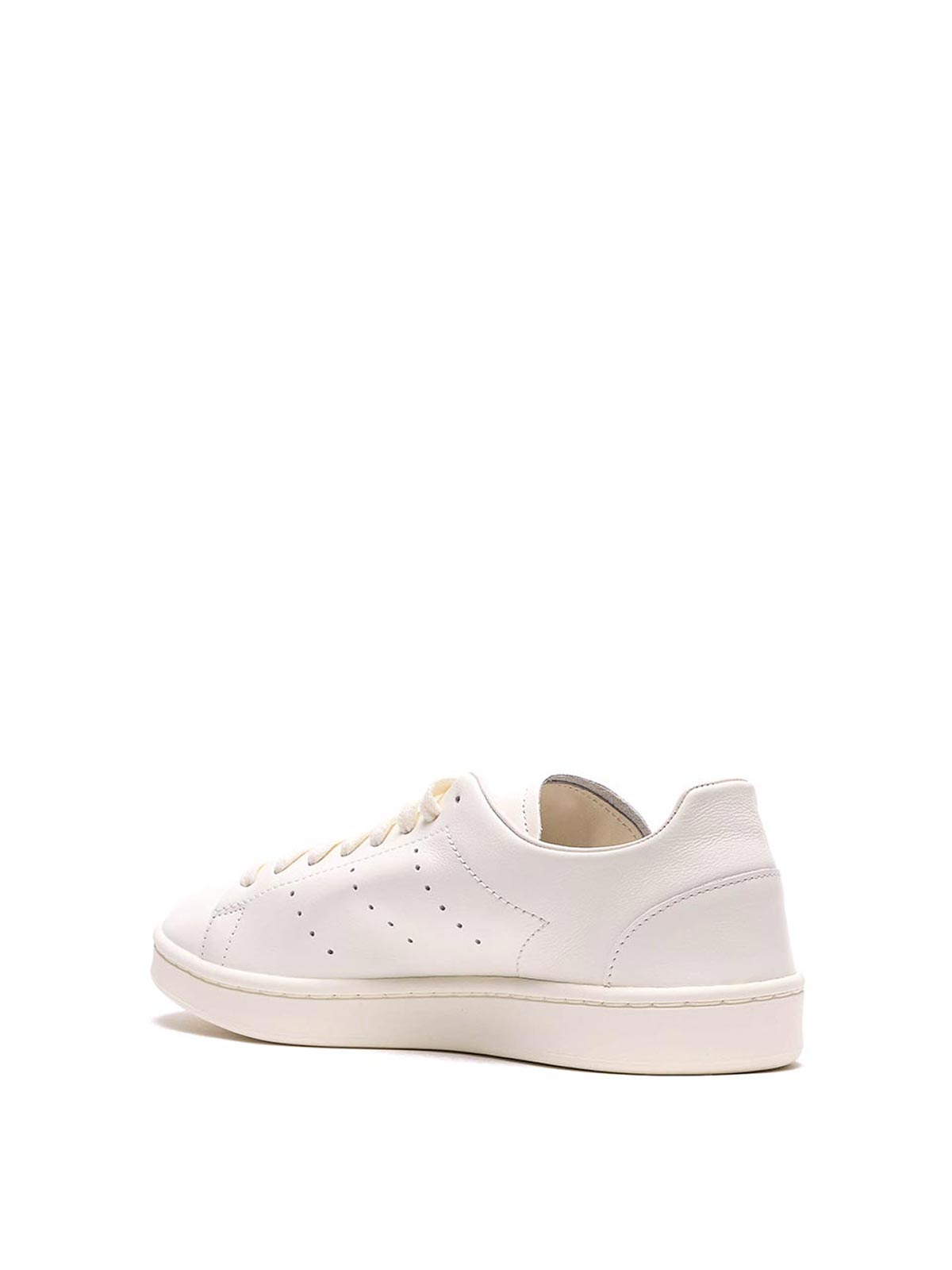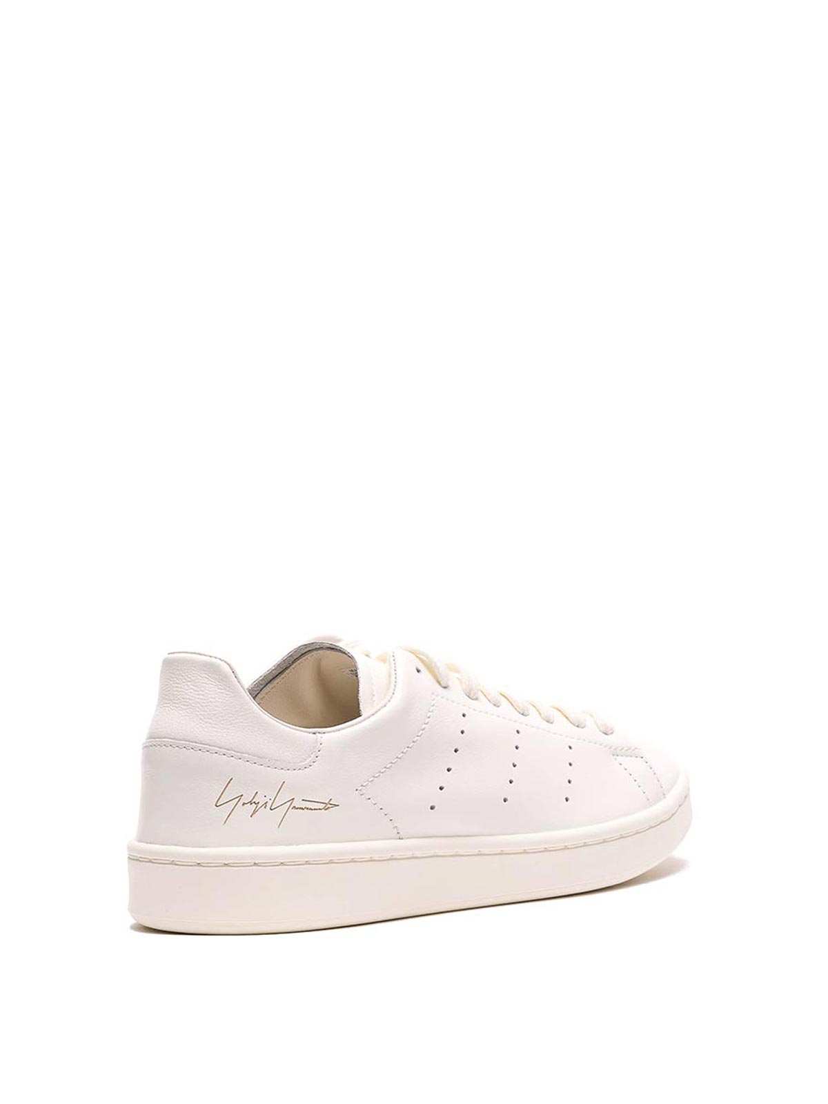 アディダス Y-3 ホワイトスターダンスニーカー、レースクロージャー、レザーアッパー、ラウンドトウ、ロゴ