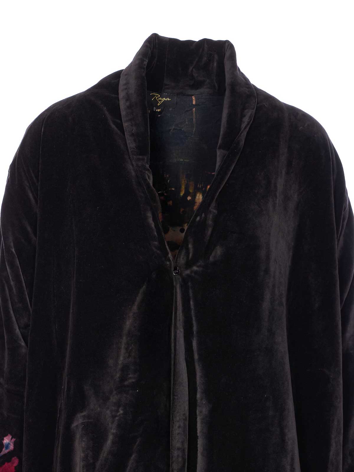 Yavi ブラックジャケット、オープンシルエット、ロングスリーブ、サイドポケット、バックプリント、ロングスリーブ