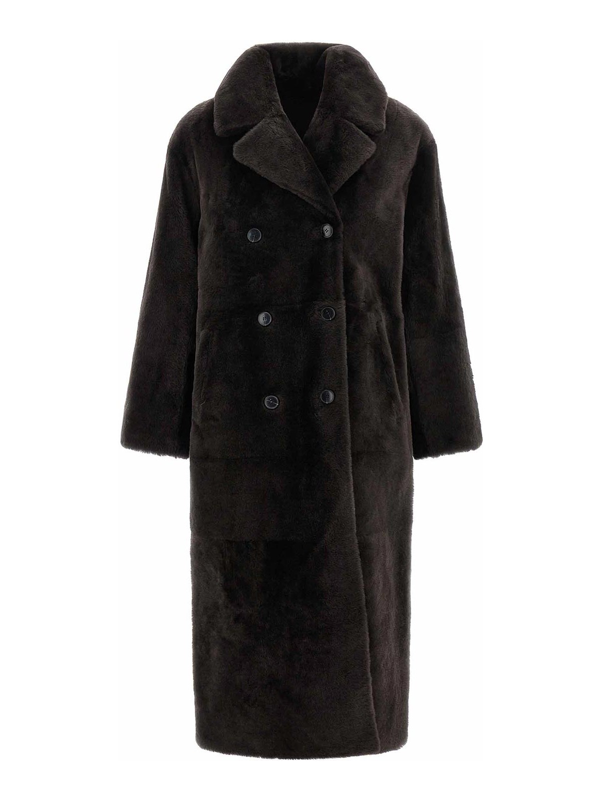 シアリングコートダブルブレストボタンラペル襟ポケット付き長袖ドロップショルダー裏地なし