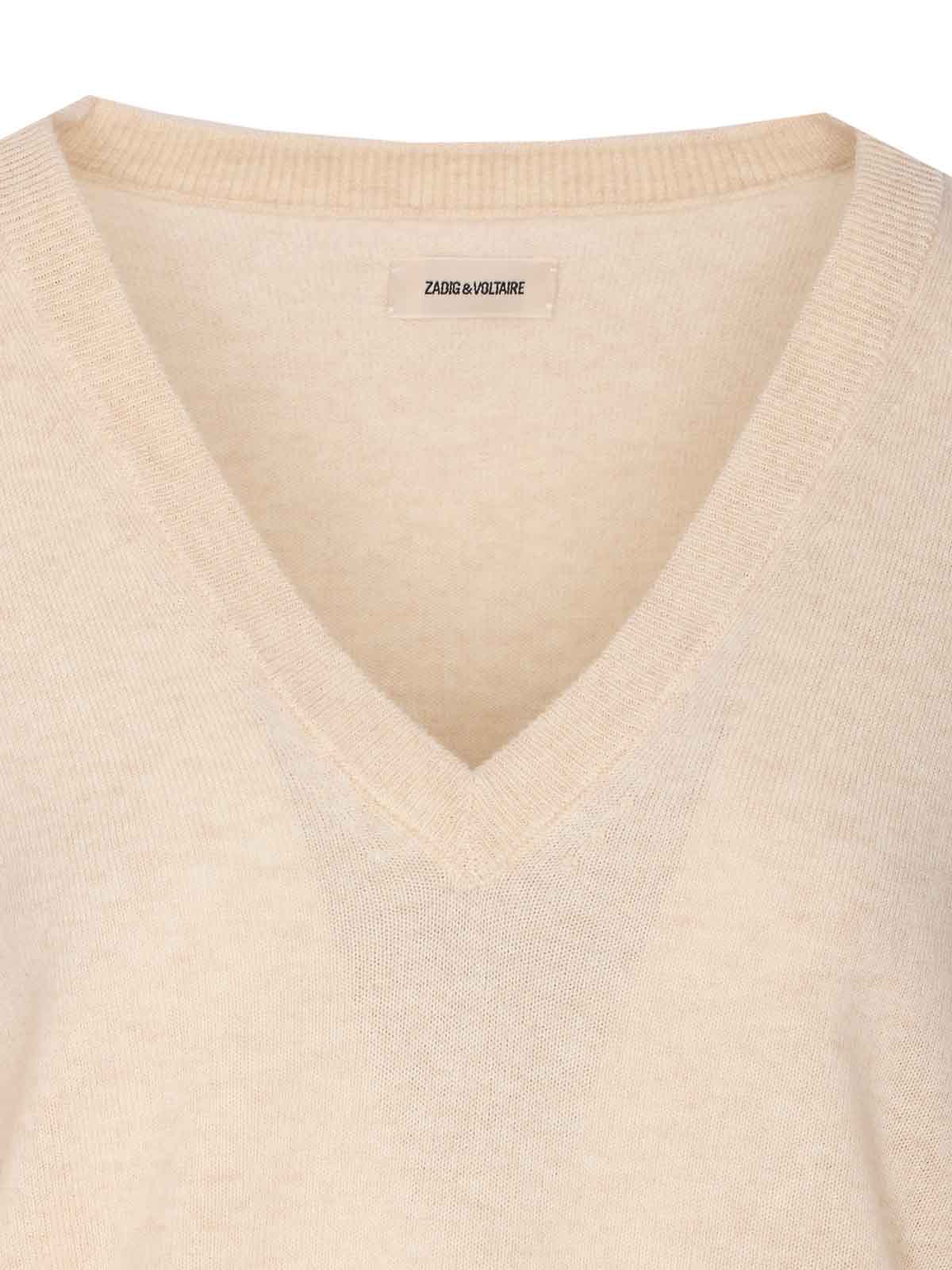 ザディグ&ヴォルテールエクリュビビビパッチセーター、Vネック、ロングスリーブ、パッチディテール