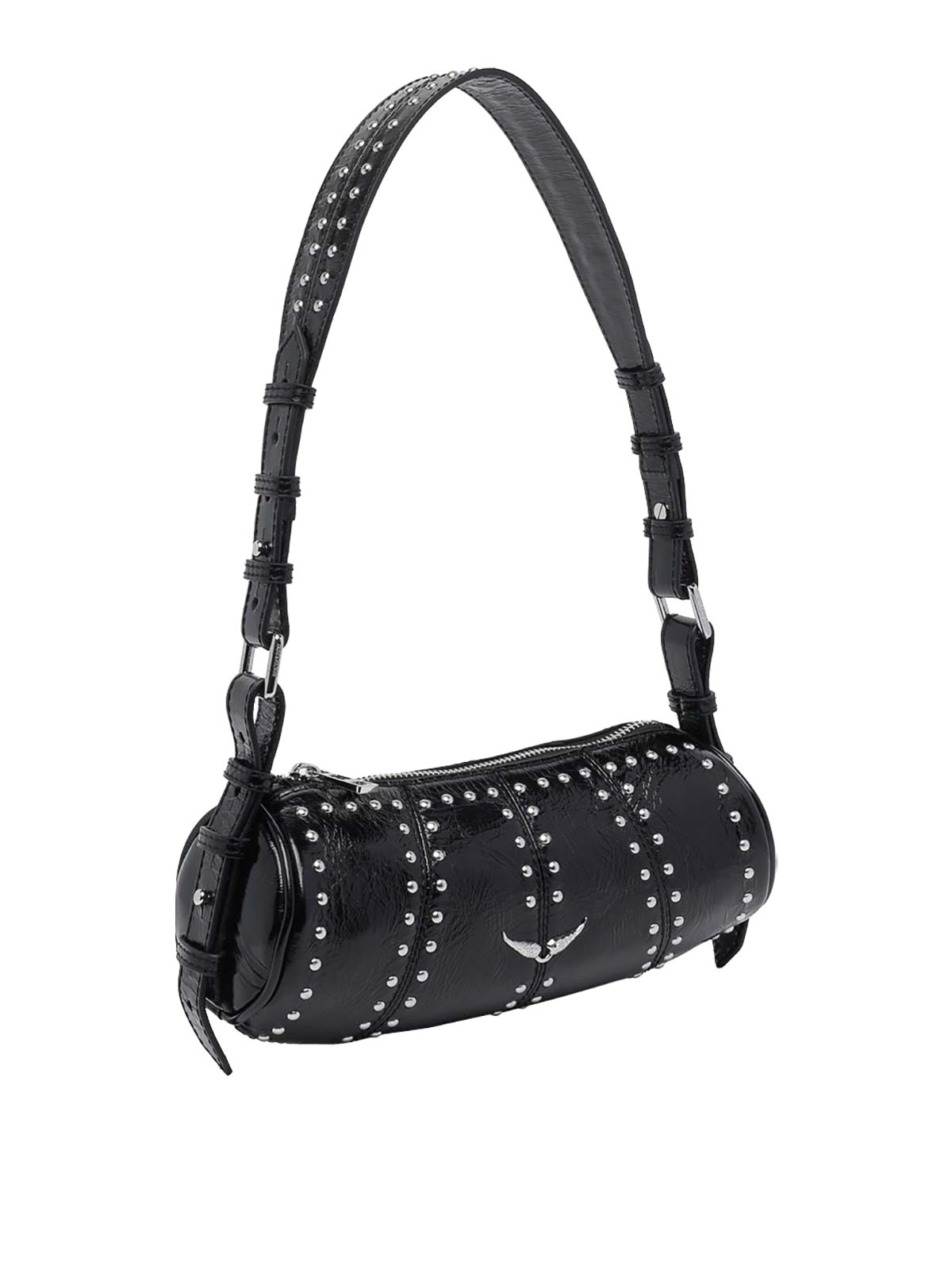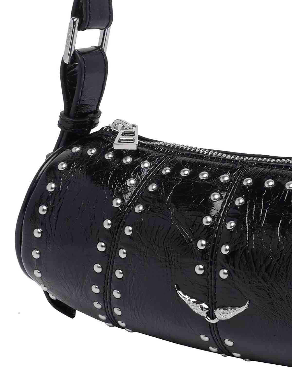 Zadig & Voltaire ブラックルドゥドゥドゥスタッズバッグ、ファスナー開閉、調節可能で取り外し可能なストラップ、レザーアッパー