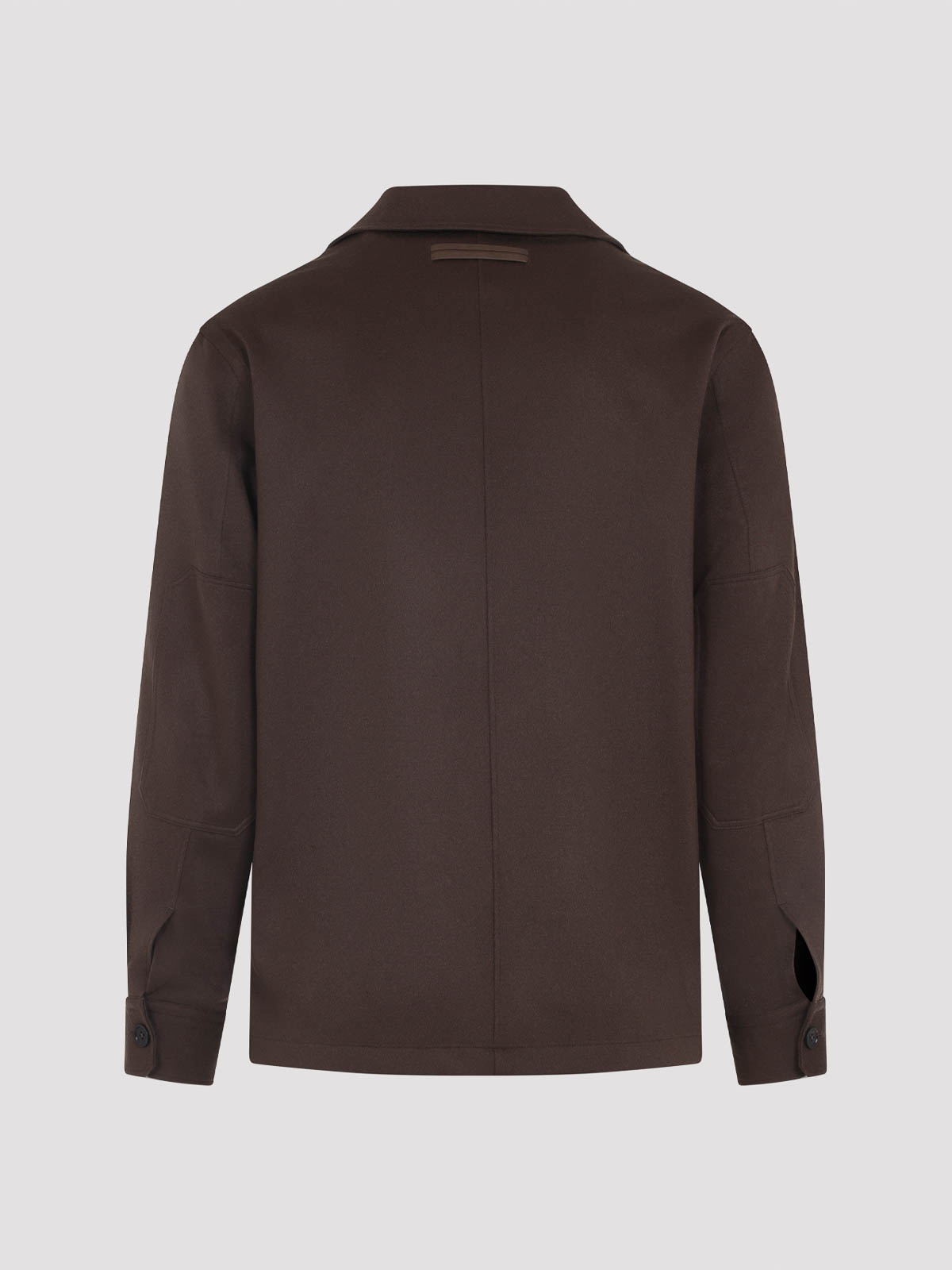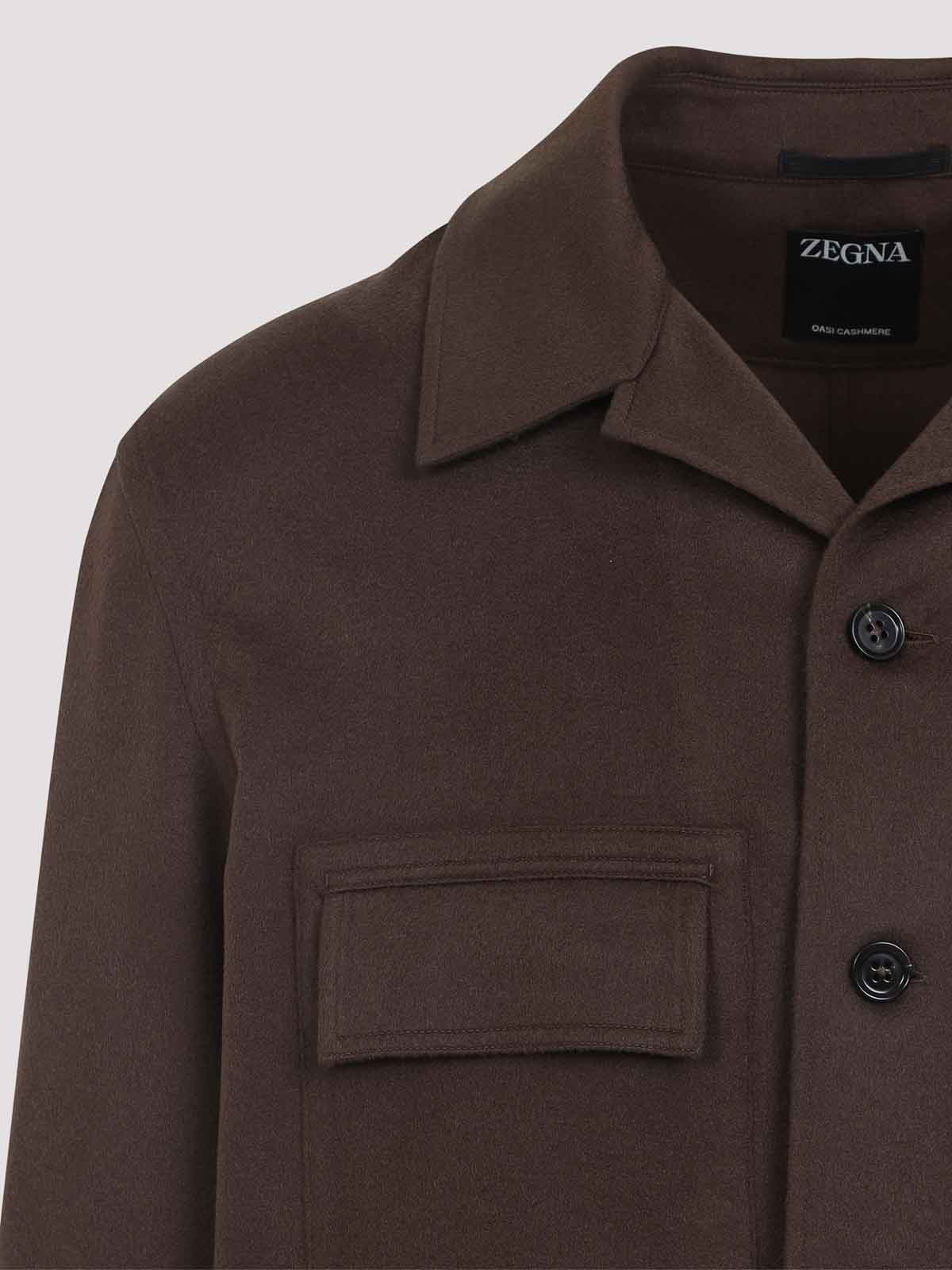 Zegna ミディアムブラウンオーバーシャツピュアメディアムブラウンオーバーシャツボウリングネックボタン付き胸フラップポケット長袖ボタン付きカフスストレートヘム
