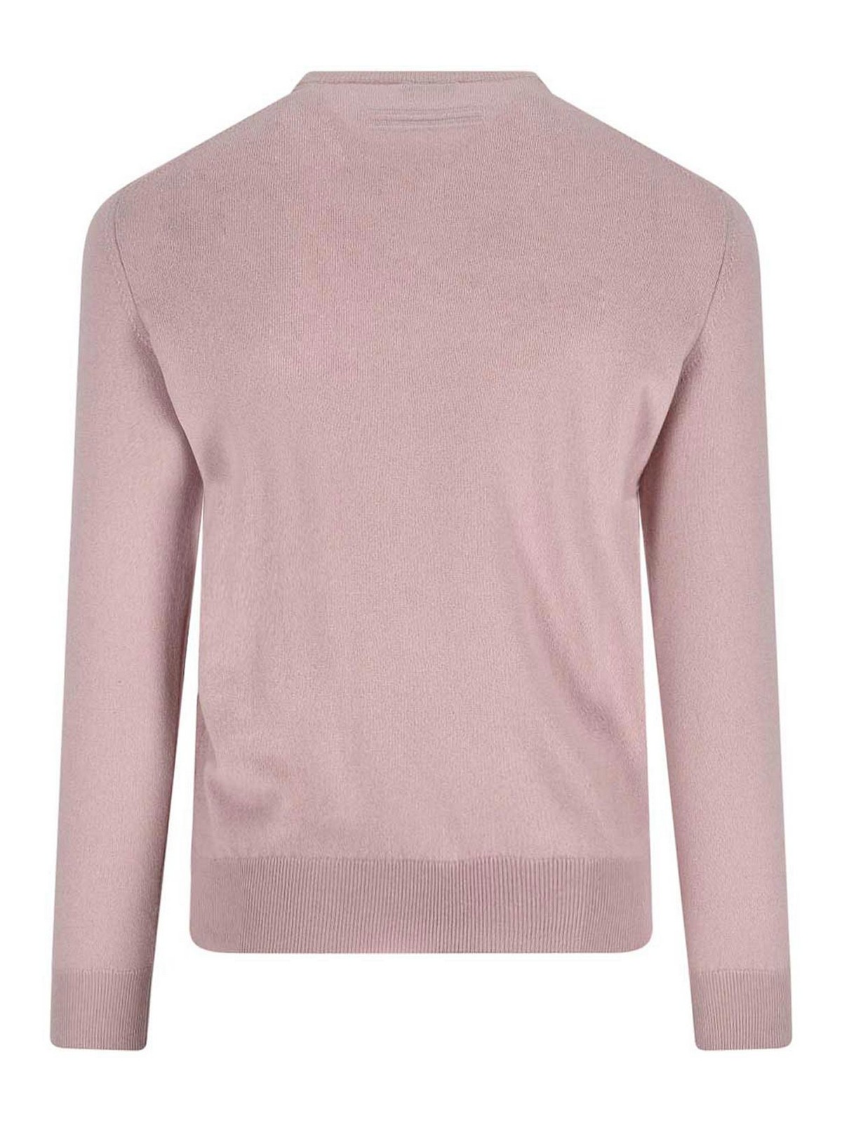 Zegna カシミアセーター、ピンク、クルーネック、ロングスリーブ、バックにトーン・オン・トーンのロゴディテール、リブ仕上げ、ストレートヘム。