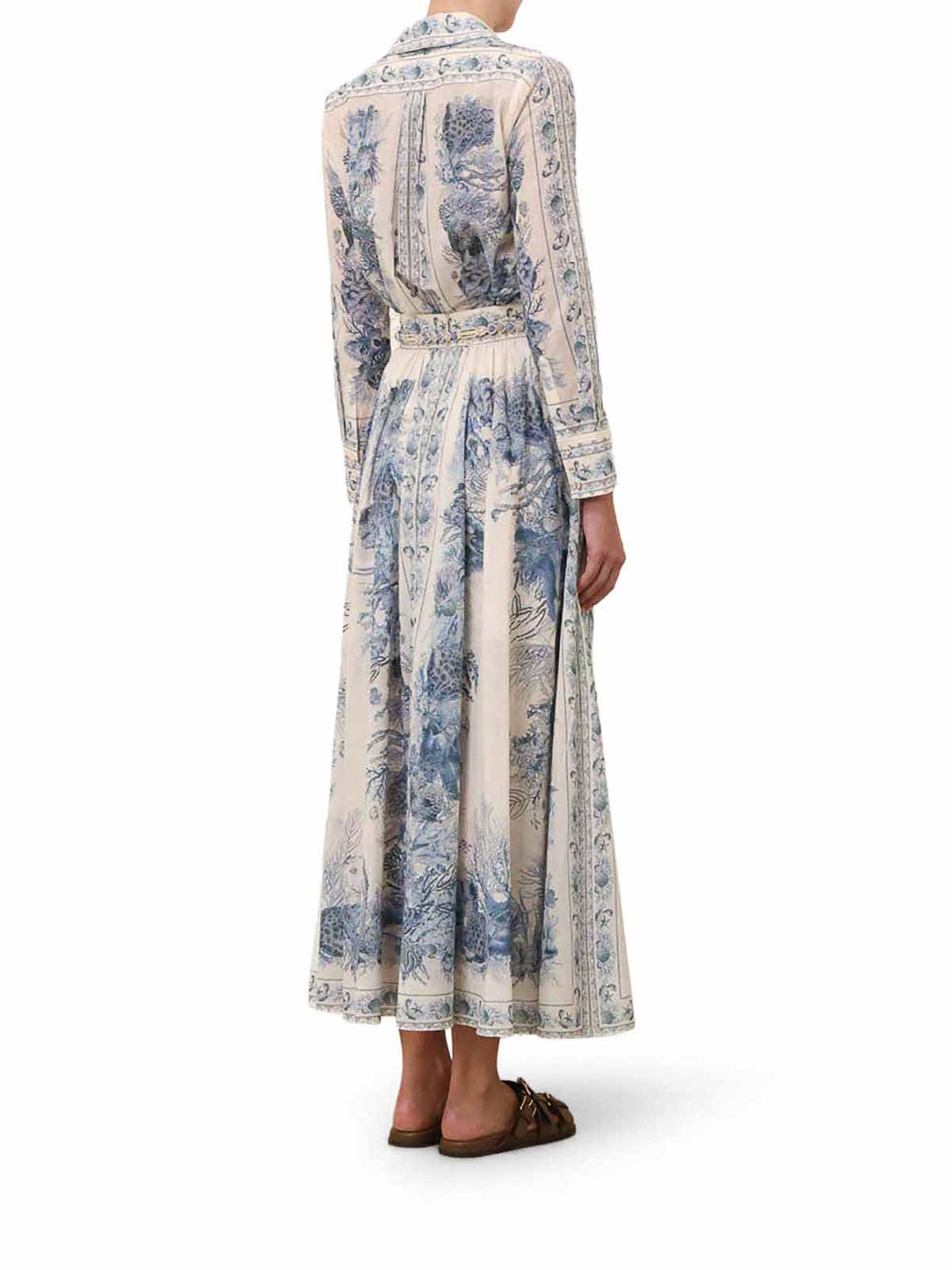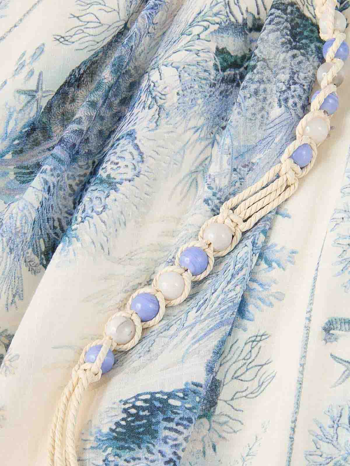 Wanderlust Aラインスカート、Wanderlust Aラインマキシスカート、フィットウエスト、オールオーバープリーツ、Aラインシルエット、インビジブルセンターバックジッパー、パターンプリント、取り外し可能なベルト、ショートライニング、100% コットン、色:ブルートワール
