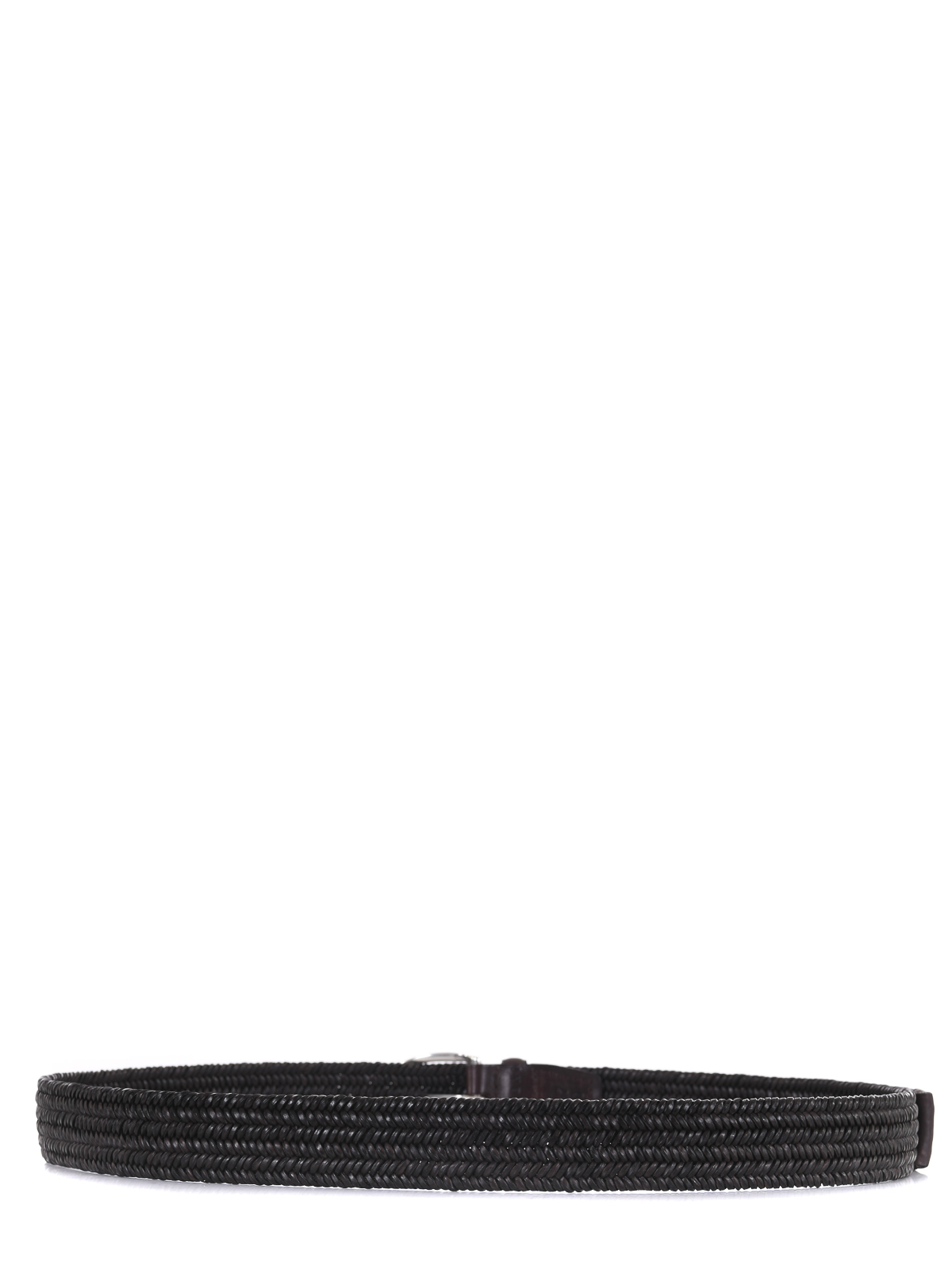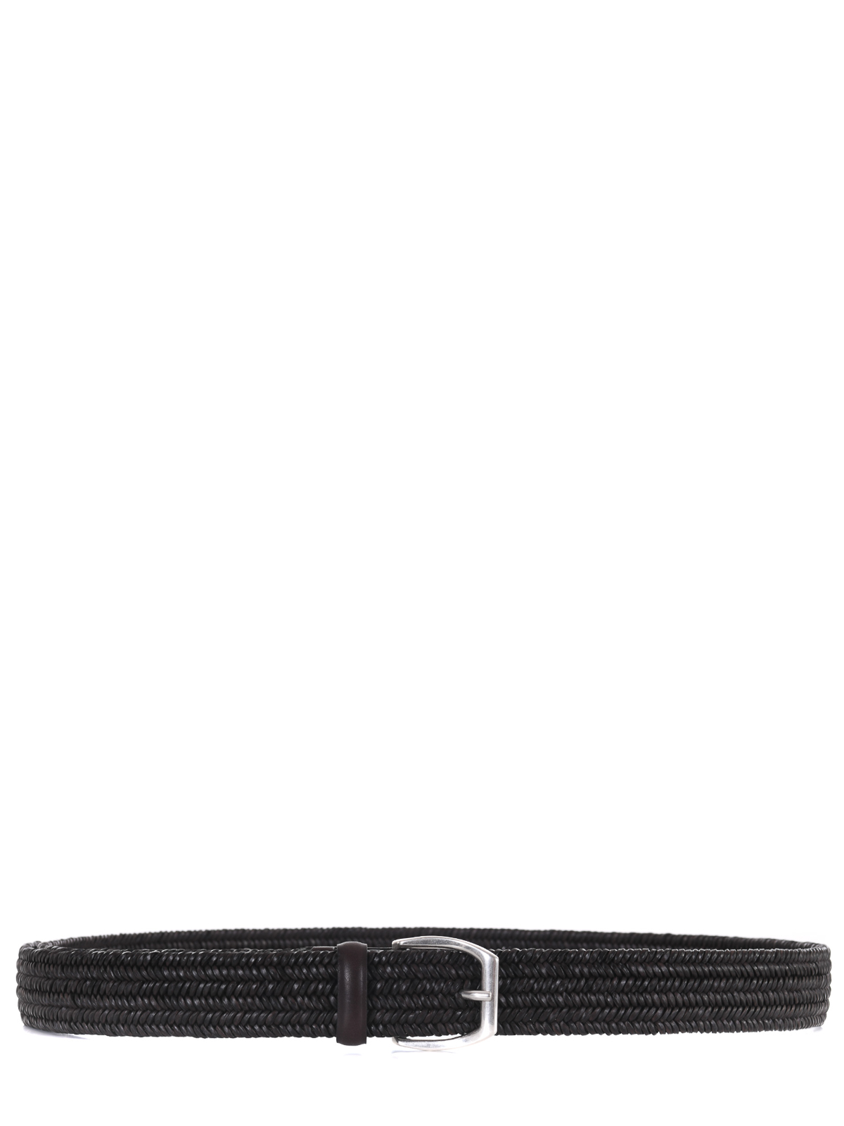 Orciani belt in dark brown woven leather stretch buckle in antiqued silver metal adjustable height 35mm 100% leather