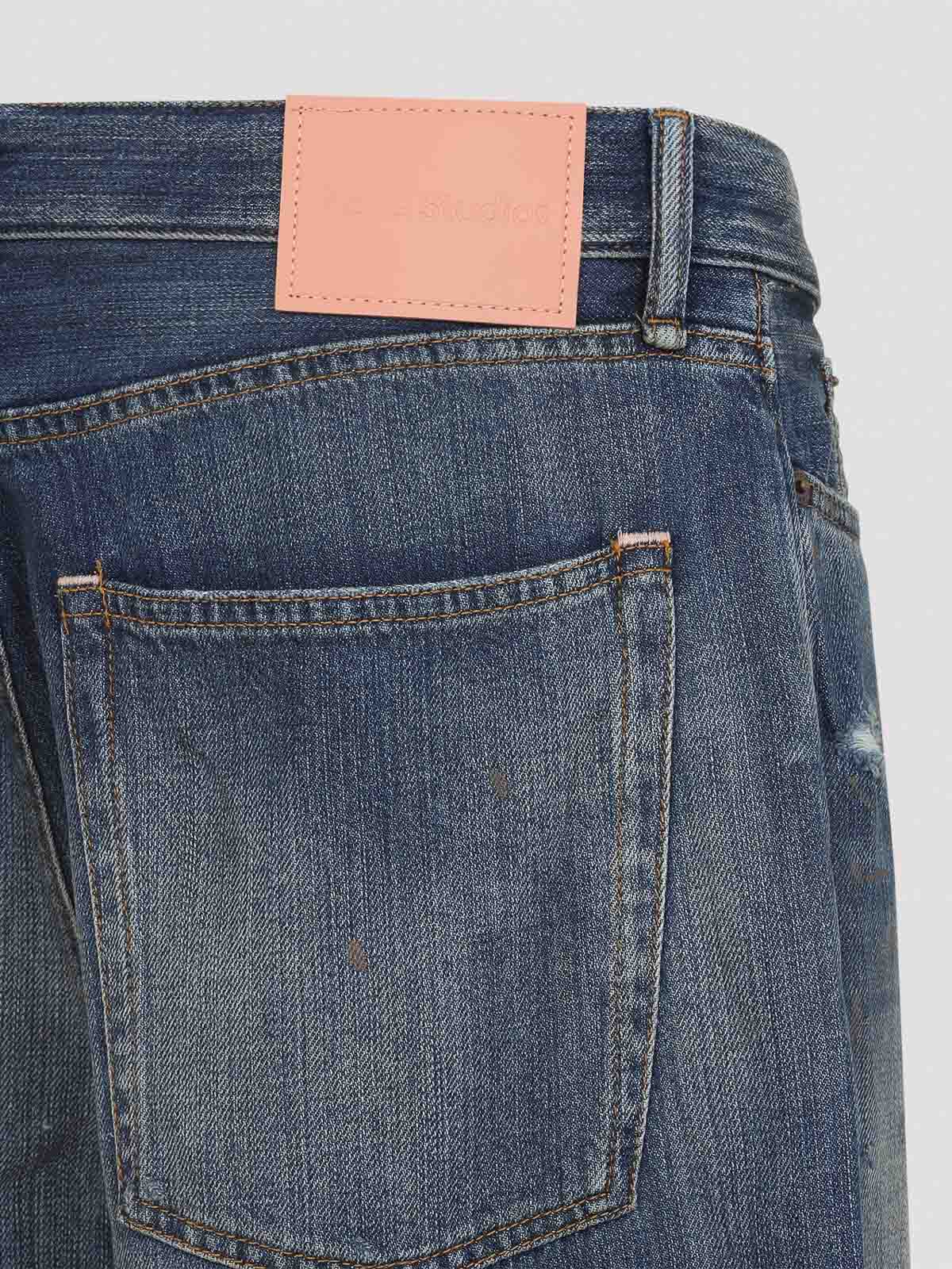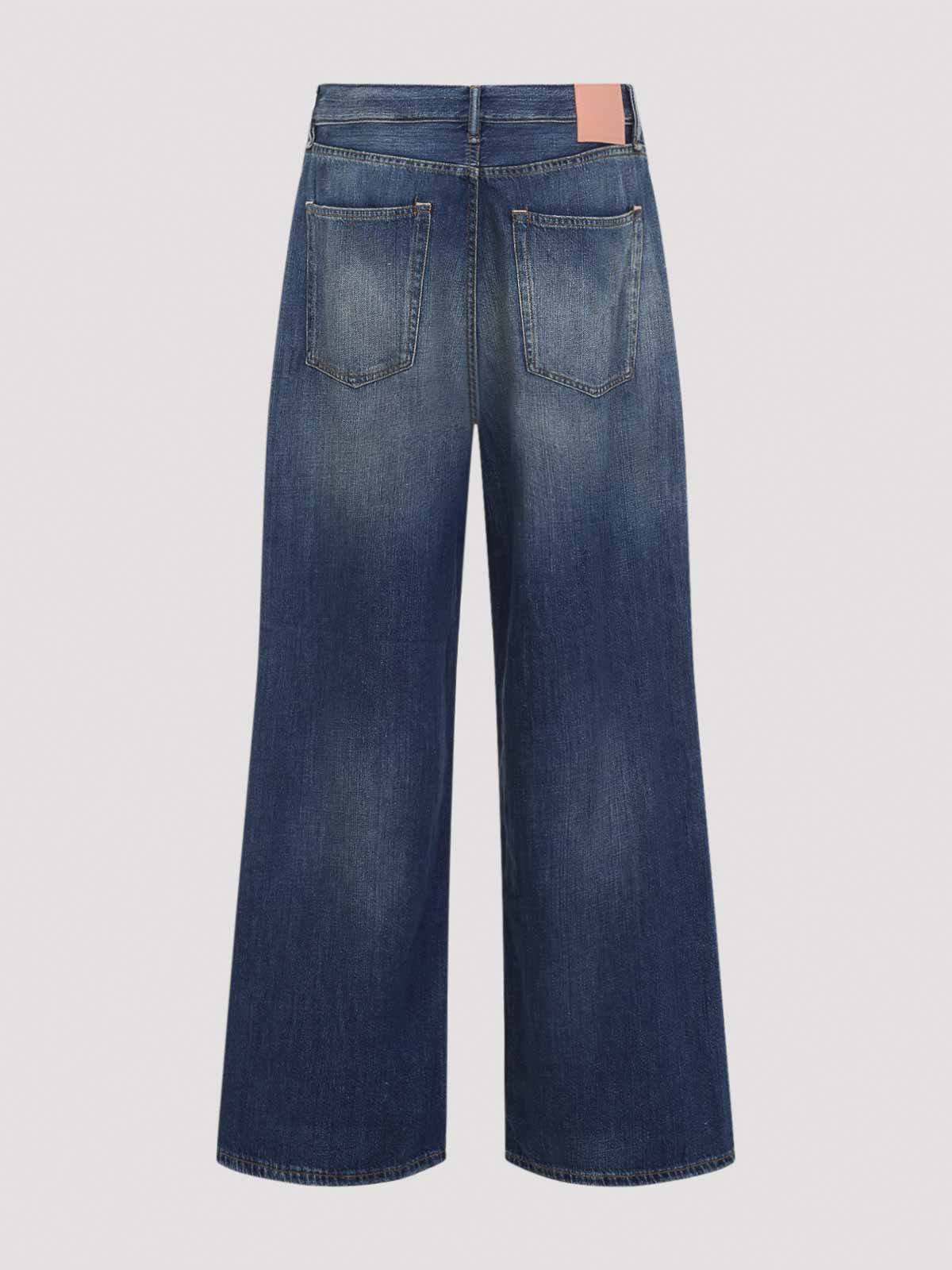 Acne studios 1981 blue cotton jeans. 5-pocket jeans crafted from bleached and dirty blue cotton denim, featuring a low-to-mid waist, belt loops, a front button-fly fastening, a branded label at the back of the waist, a wide baggy leg, and a loose fit.