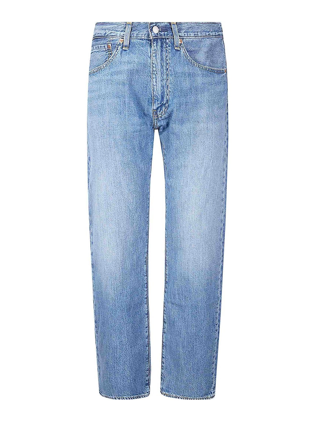 Men's trousers, five pocket jeans model, button and zip closure, regular waist and straight leg.