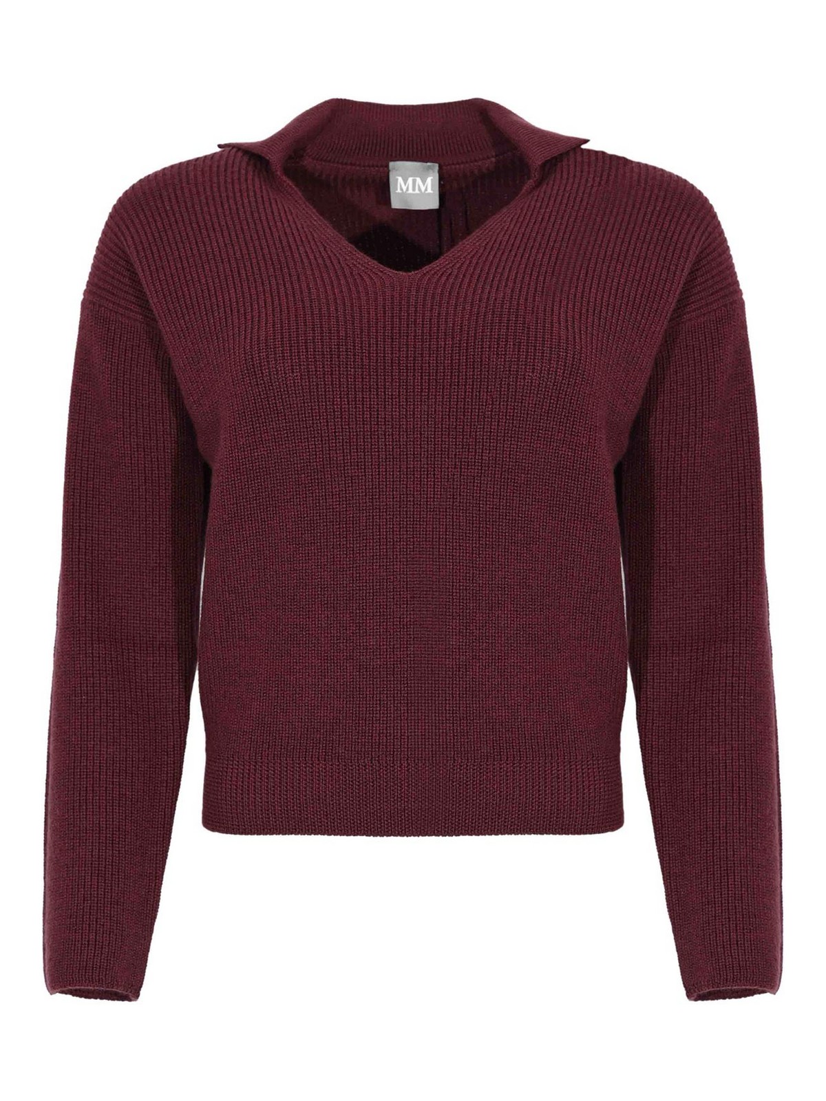 Wool sweater mm max mara, acceso model fabric: wool knit pattern: solid color sleeves: long collar: v-neck polo closure: none pockets: none details: chunky knit, relaxed fit, slightly dropped shoulders, ribbed cuffs and hem lined: none fit: regular