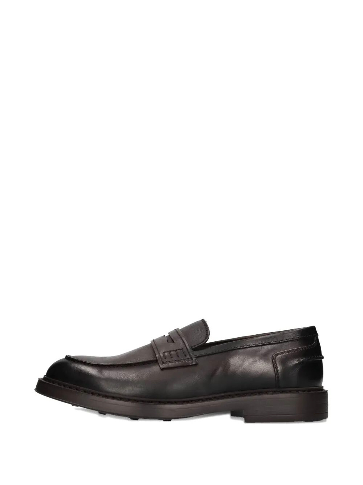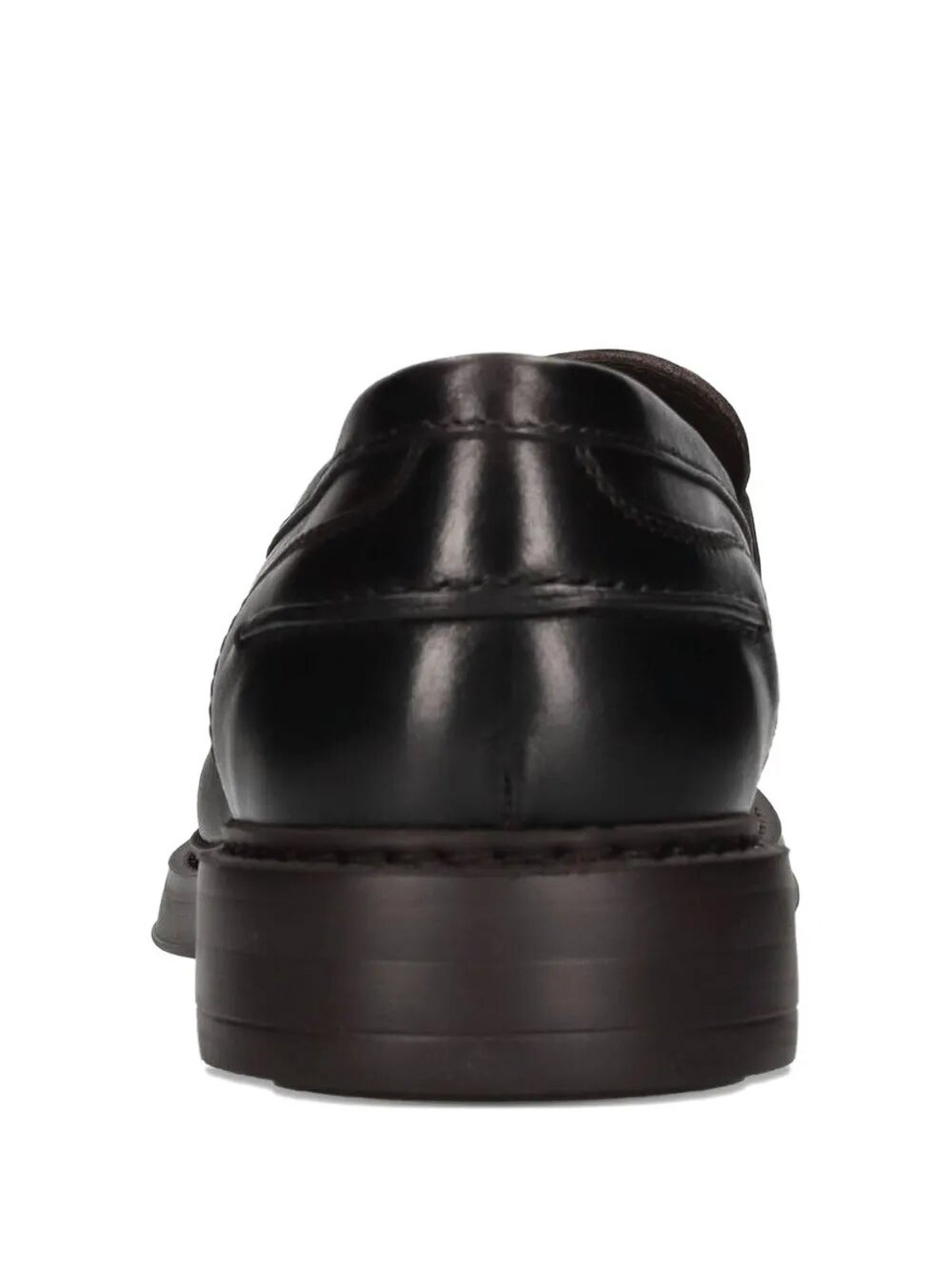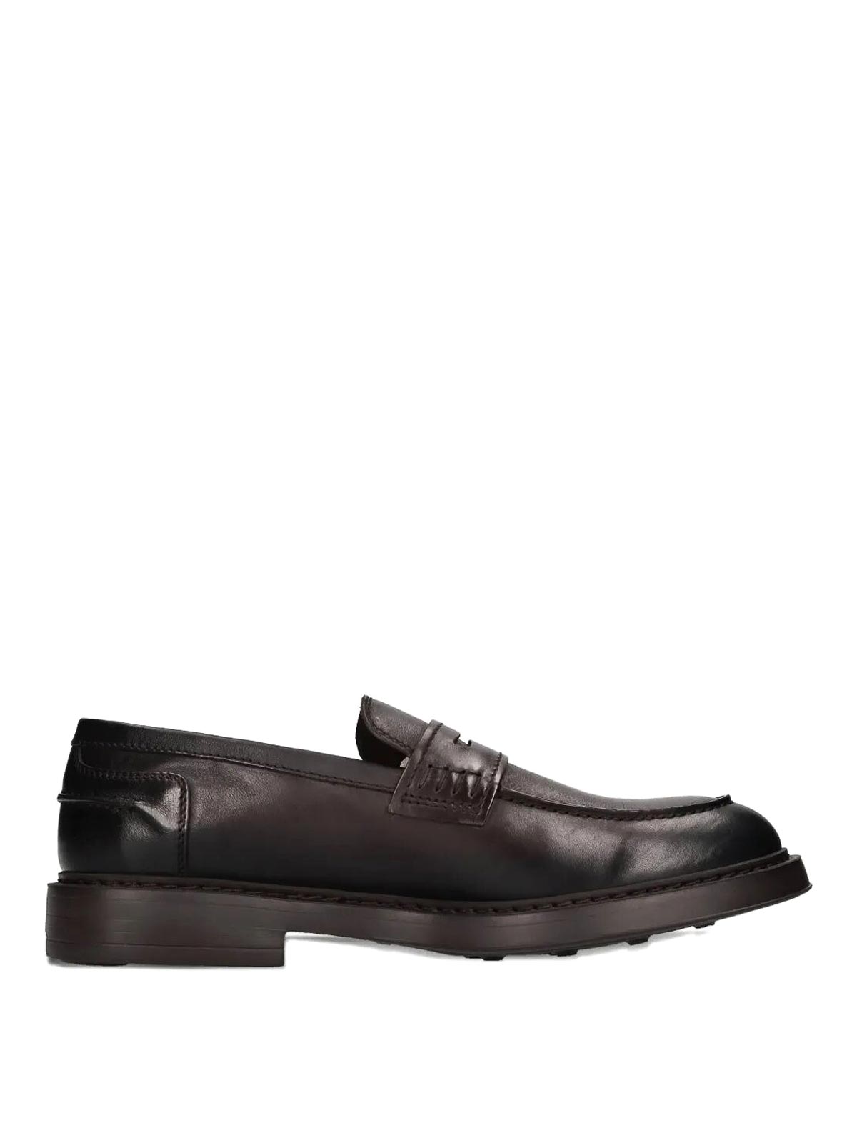 Doucal's brown leather loafer, non-slip rubber sole, visible stitching, leather lining, and leather outsole.