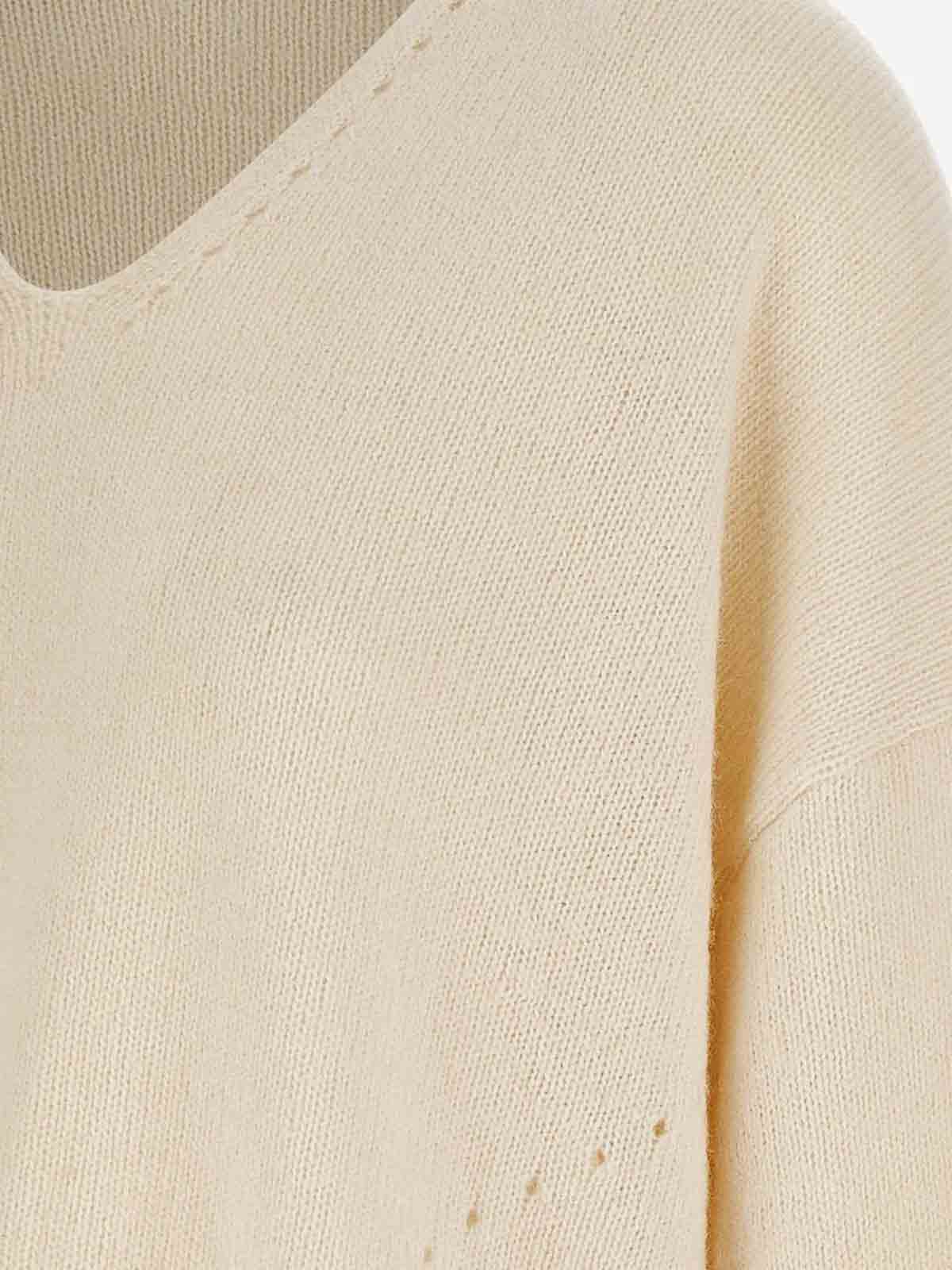 V-neckline long sleeves with cuff perforated details ribbed profiles 44% polyamide 34% alpaca 22% wool
