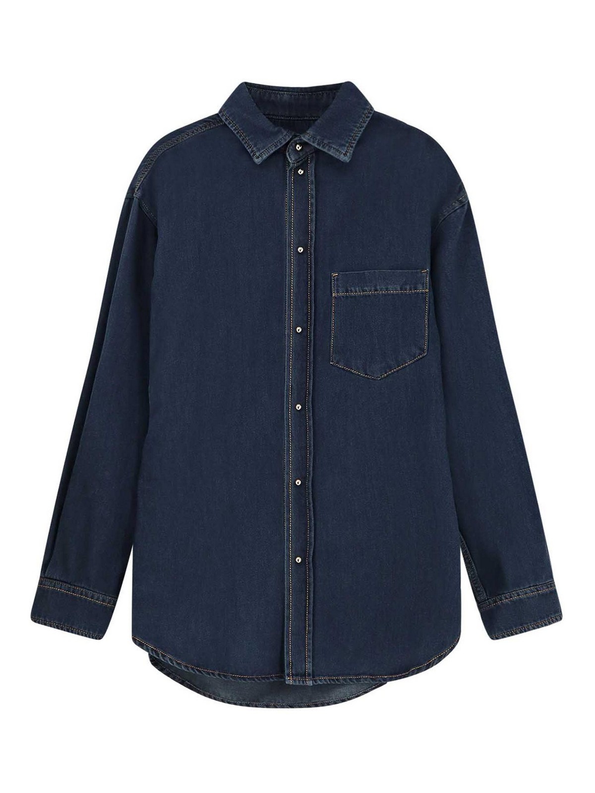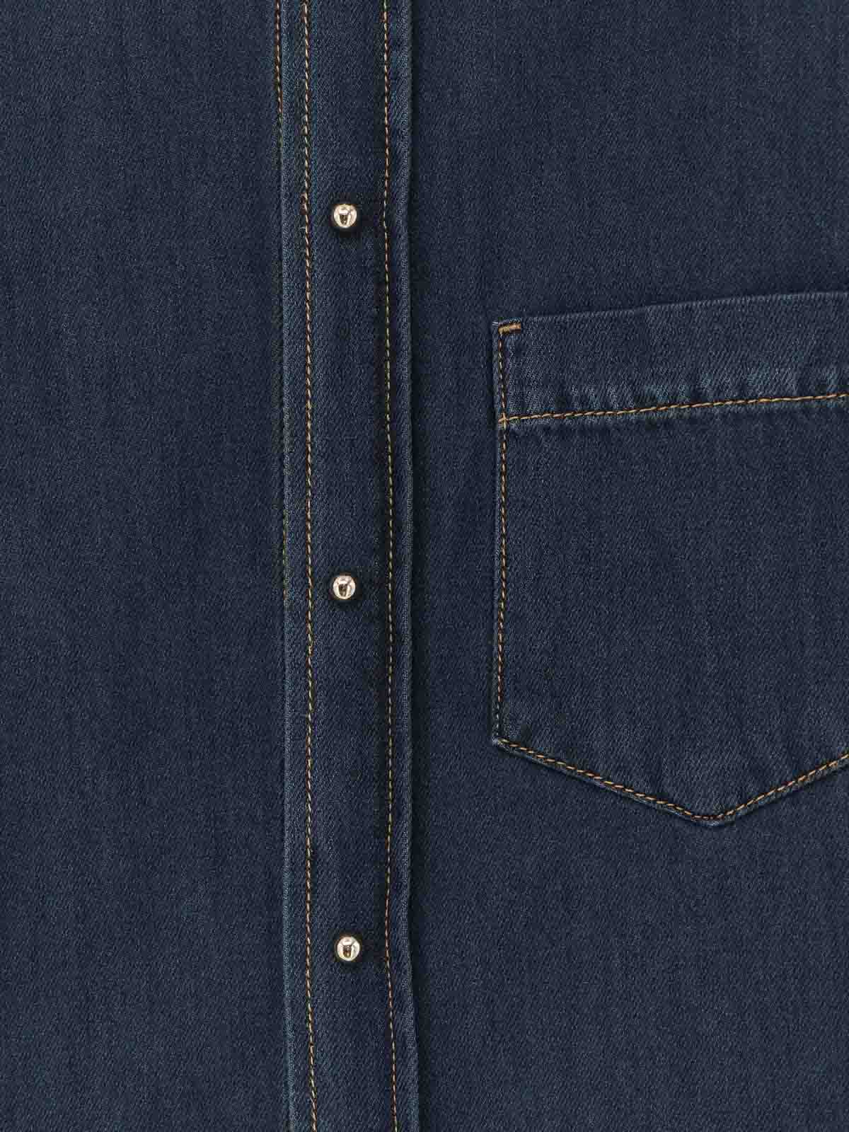 Metal ball button closure, pointed collar, long sleeves with cuff and button, made in Italy, 64% cotton, 36% Tencel
