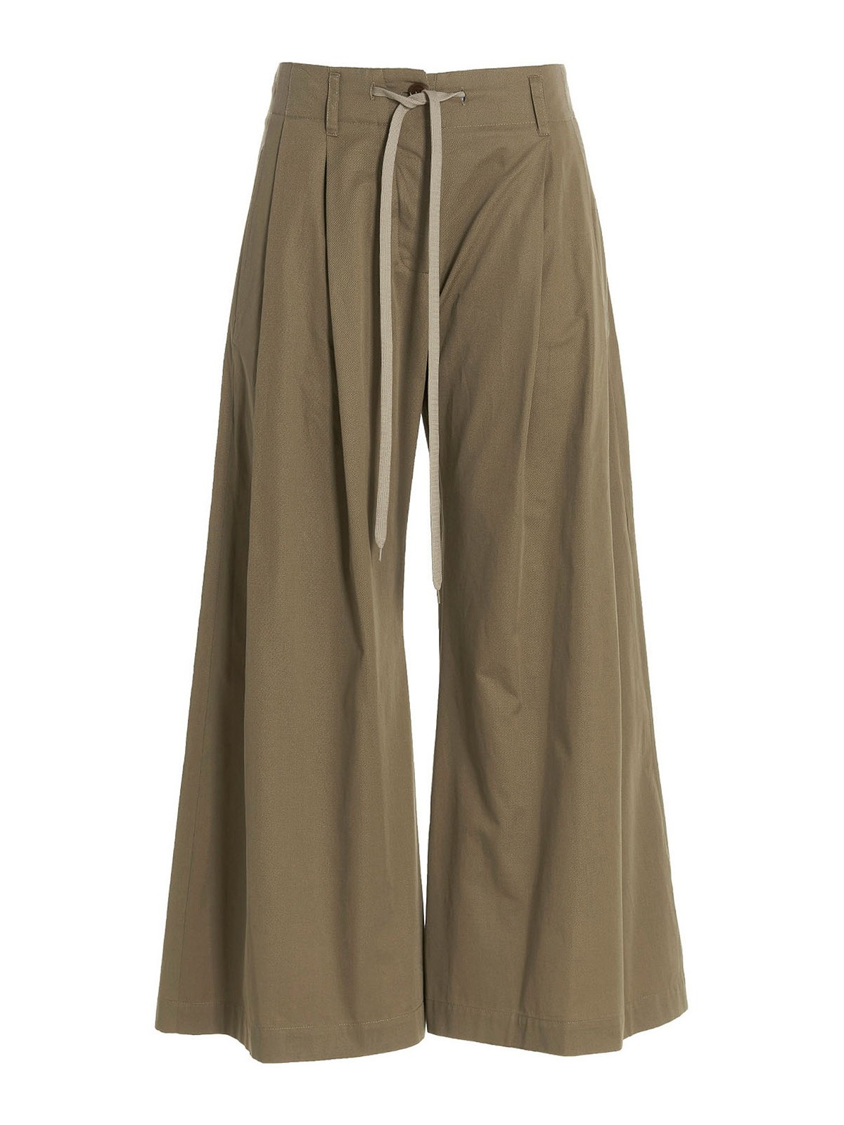 Waterproof cotton pants with button closure, with adjustable drawstring at the waist, front pleats and pockets.