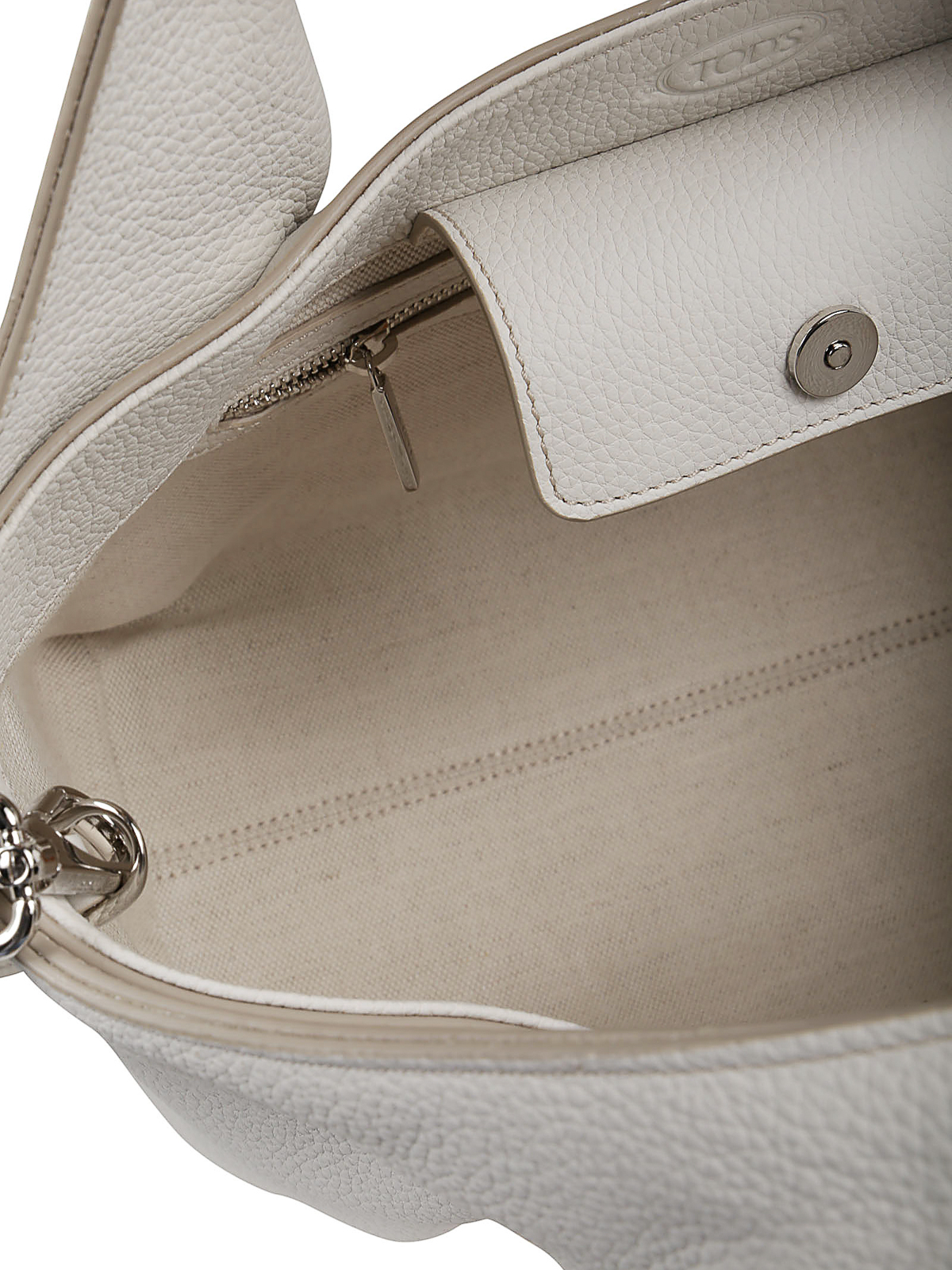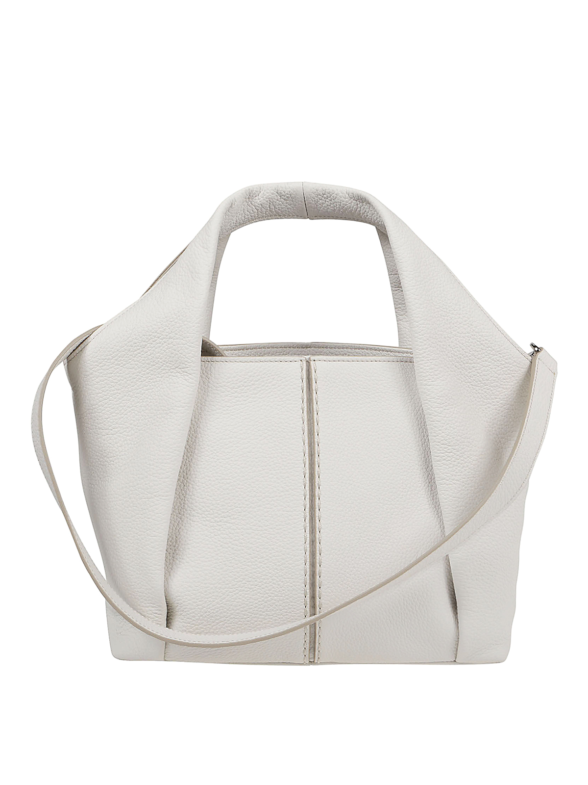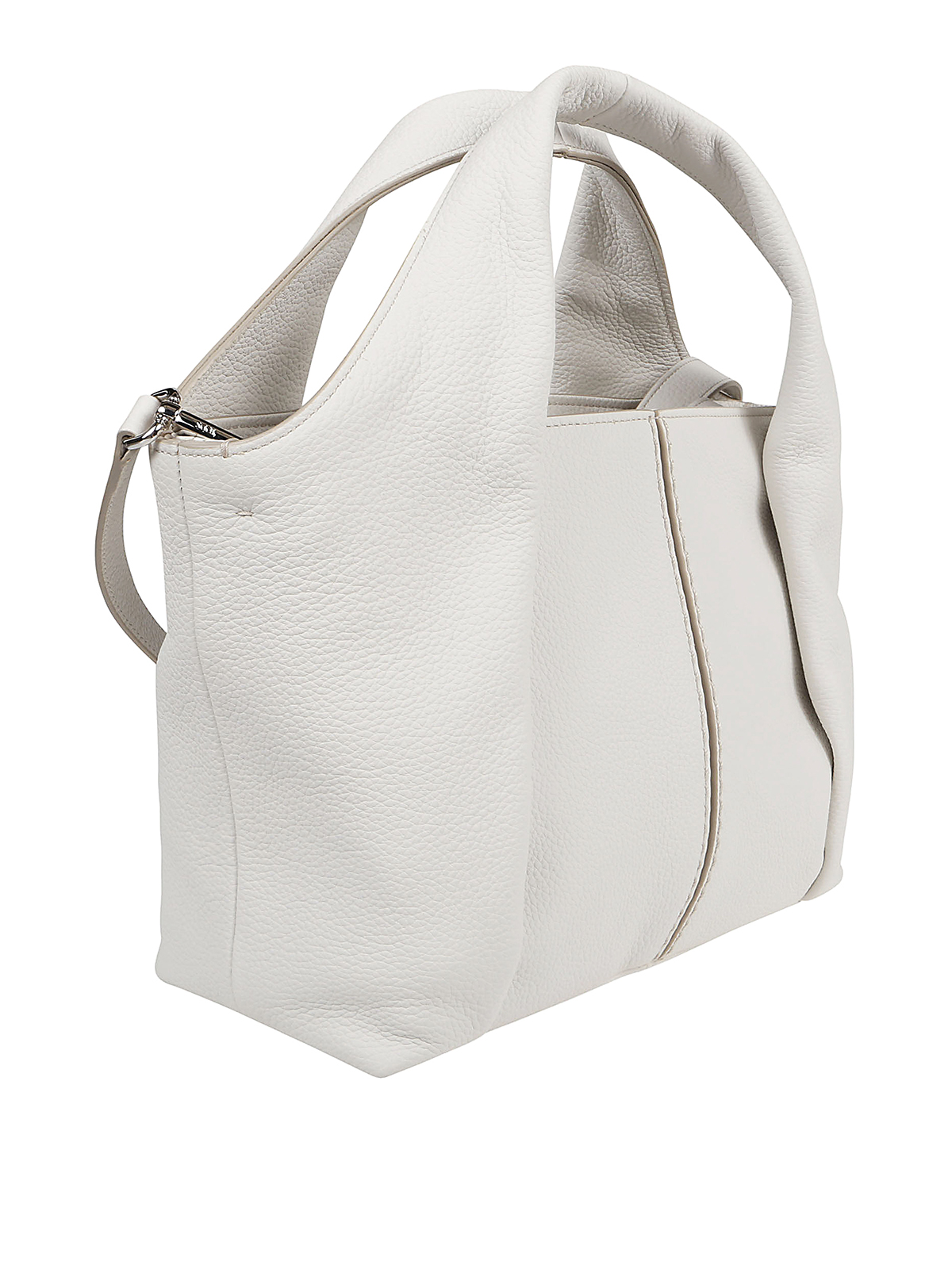 Grained calfskin tote bag featuring built-in top handles, magnetic closure, inner zip pocket and removable shoulder strap.