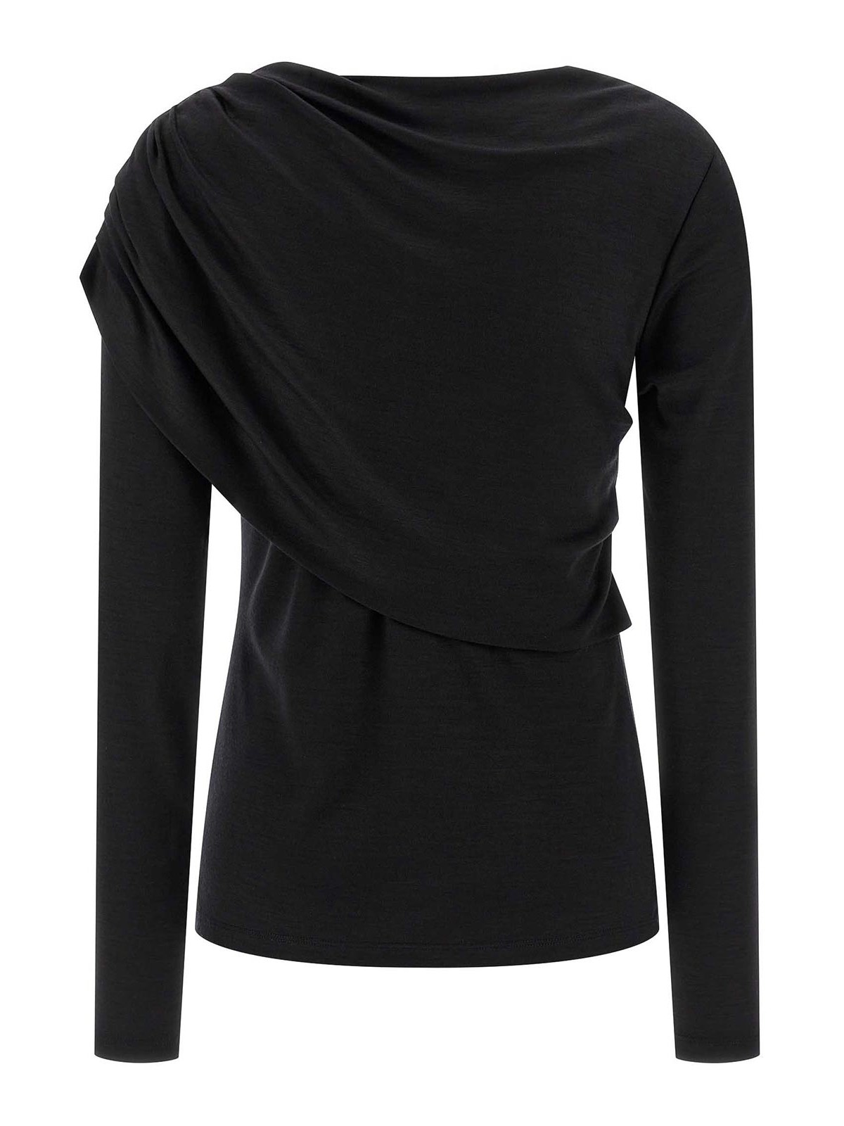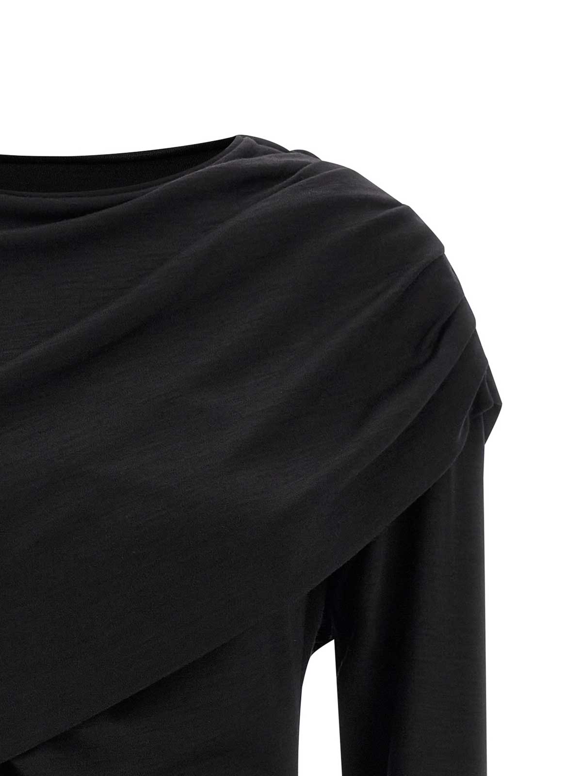 asna' draped wool jersey top with round neckline, curled insert on the shoulder, long sleeves.