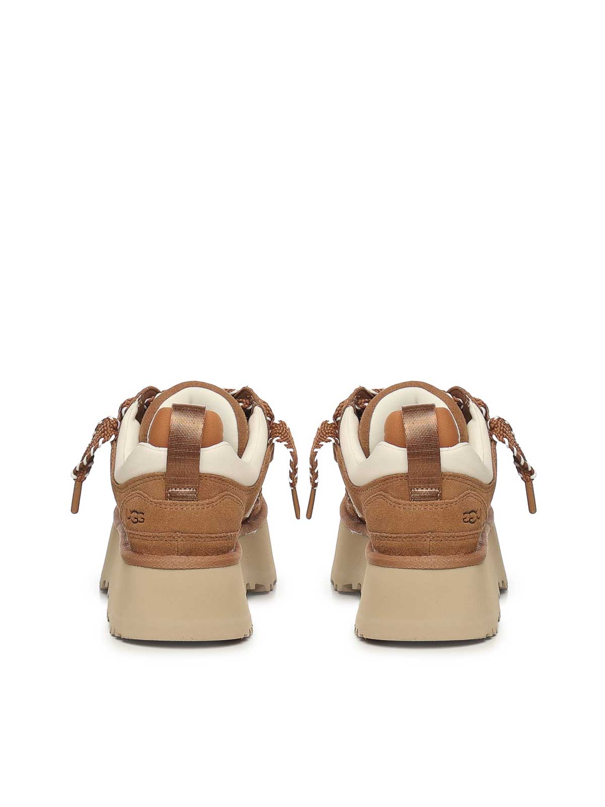 Suede and fiber lace, up mesh out embossed ugg logo designer color chestnut