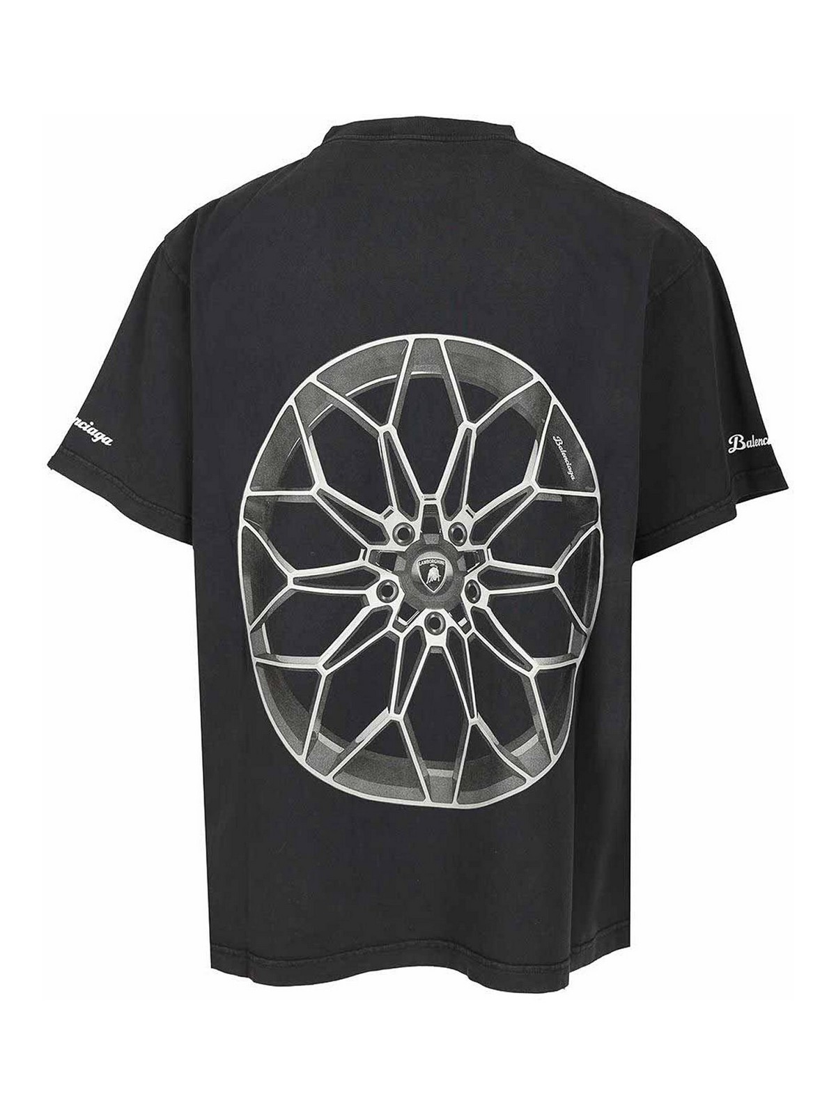 Balenciaga | automobili lamborghini oversized t-shirt in faded dry jersey, featuring a crew neck, short sleeves, and a lamborghini tee motif printed on the front and back. designed by balenciaga for automobili lamborghini.