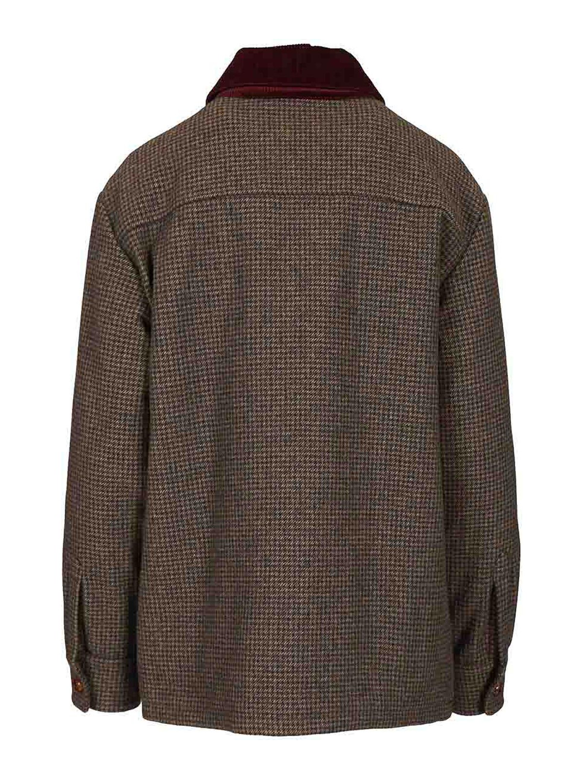 badis berber jacket with houndstooth pattern by blaz milano with contrasting corduroy collar loden, effect buttons in lacquered and two large chest pockets oversized fit single, breasted dark brown logo