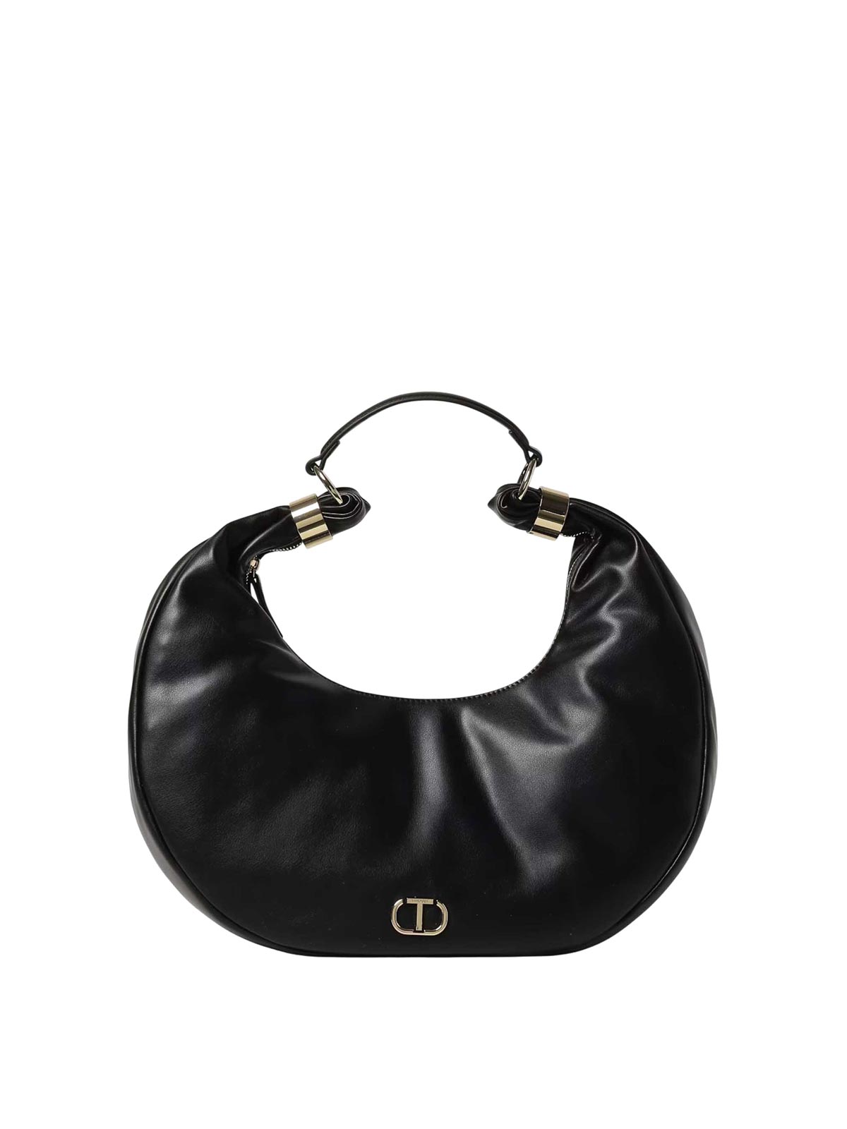 Twinset eclipse hobo bag with rings synthetic the eclipse twinset hobo bag is an iconic accessory that combines fluid and sophisticated lines made of synthetic lambskin effect has a rounded crescent shape enhanced by metal rings and the distinctive oval logo t the synthetic one and the top with zip guarantee comfort and practicality while the interior offers space for essential objects soft metal crescent structure with decorative rings oval logo t single front synthetic top with zip to with flat pocket solid color effect finish