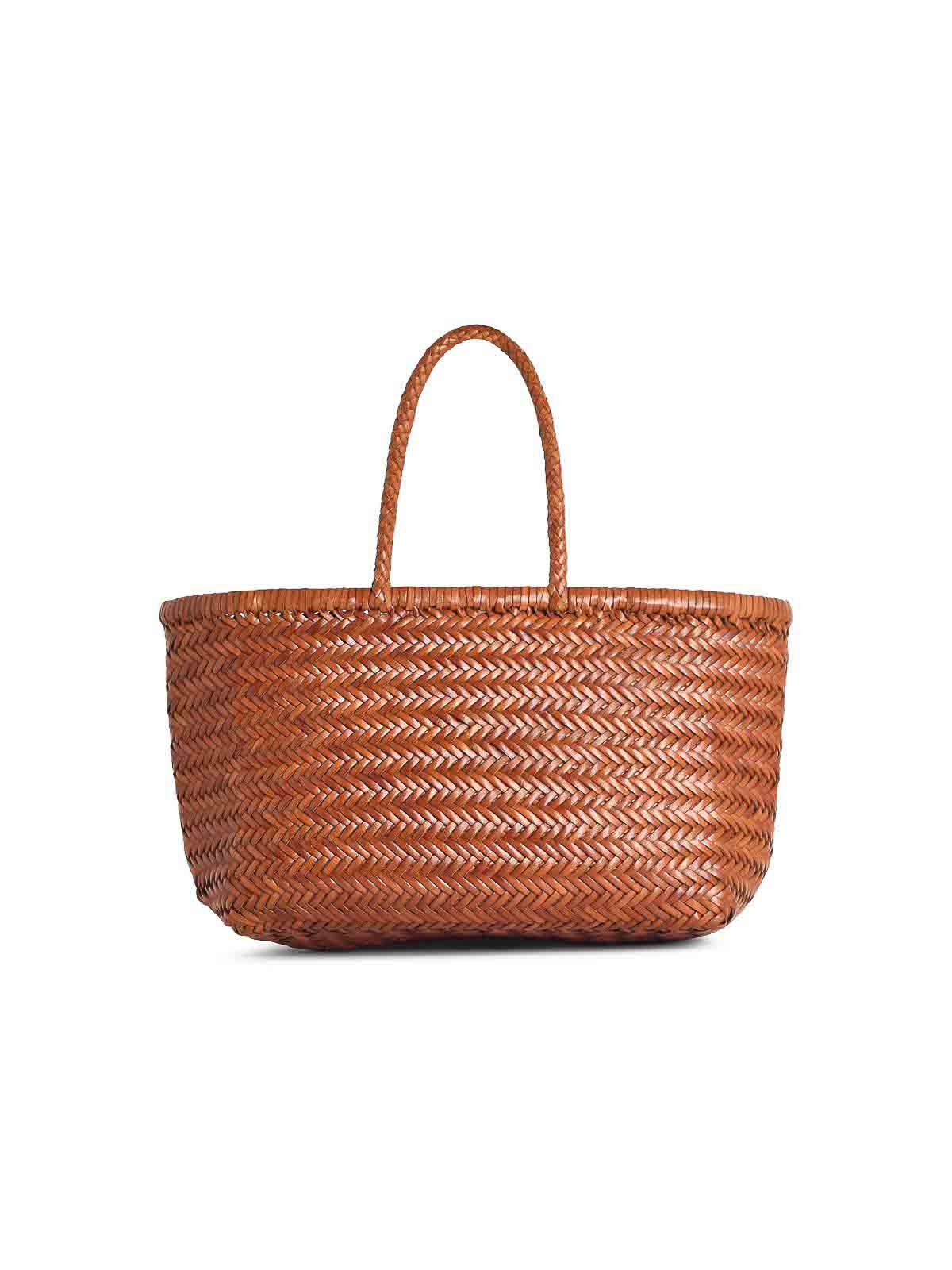 Hand-woven basket unlined open top hand-sewn 'san cristoforo' medal-shaped pendant inside \