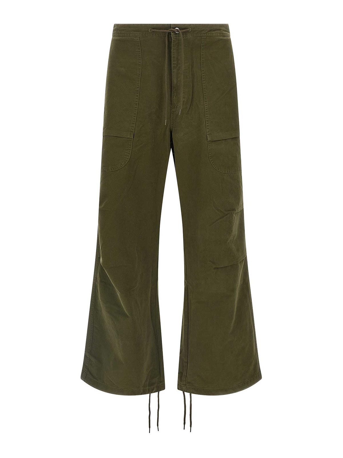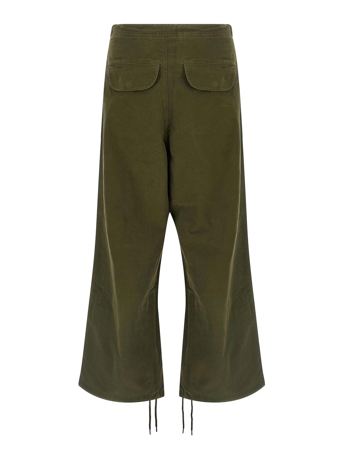 barren cargo' cotton pants, wide and straight leg with cargo pockets, zip and front button closure, drawstring at the waist, low crotch, pleats, drawstring on the leg bottom.