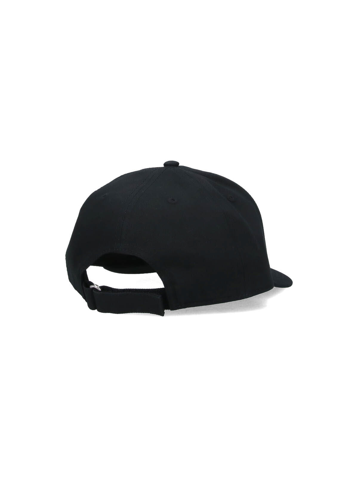 Moncler logo baseball hat, in black cotton, curved visor, tone-on-tone logo embroidery on the front, strap strap on the back.