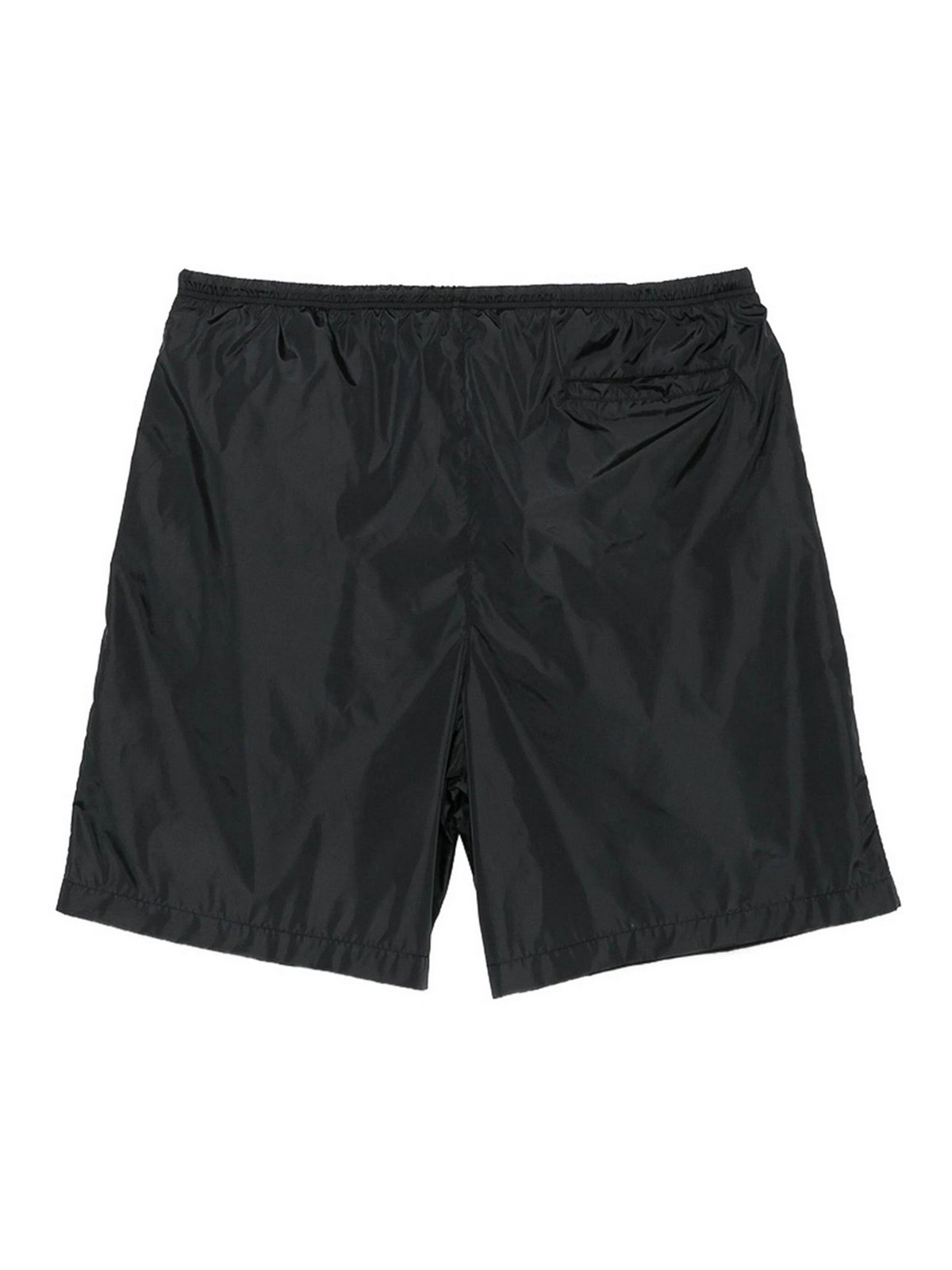 Black logo print elasticated waistband drawstring side pockets rear pocket be mindful to try on swimwear over your own garments