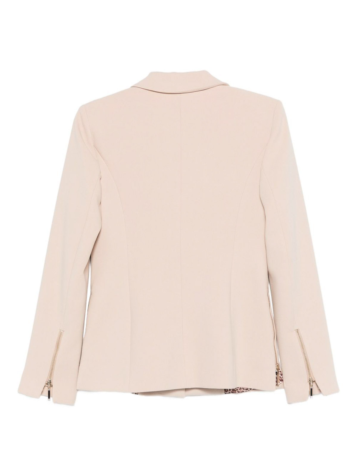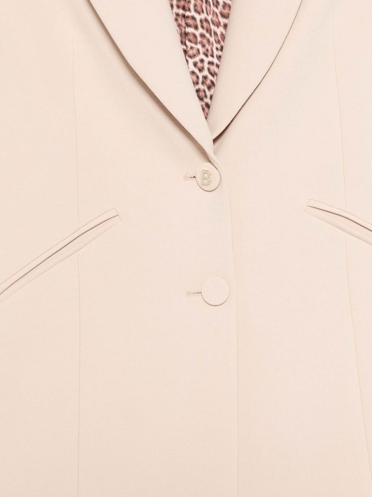 Beige blazer by blugirl featuring a button notched lapels welt pockets and zip at the cuffs the animal print adds a unique and sophisticated touch of style this blazer combines elegance femininity and contemporary design perfect for office looks or casual-chic outfits with a fashionable edge