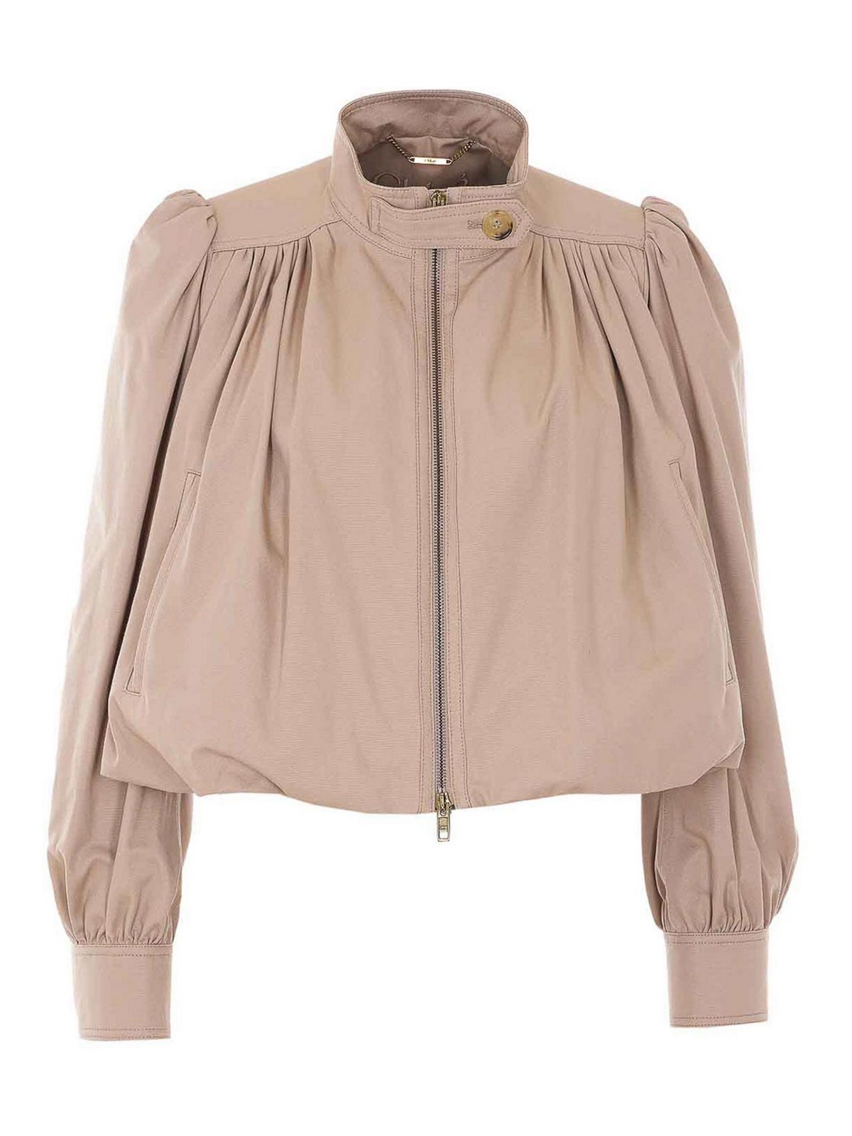 Chlo beige jacket, zip closure on the front, button closure on collar, long sleeves, pockets, button on cuffs