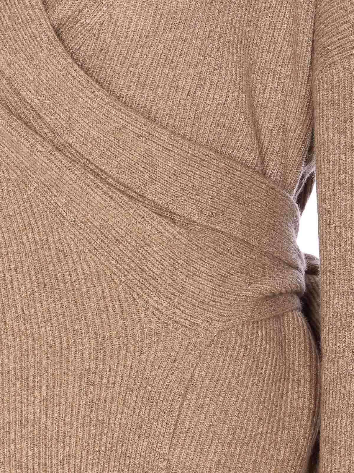 Uma wang beige wrap cardigan, long sleeves, bow detail, cut out detail