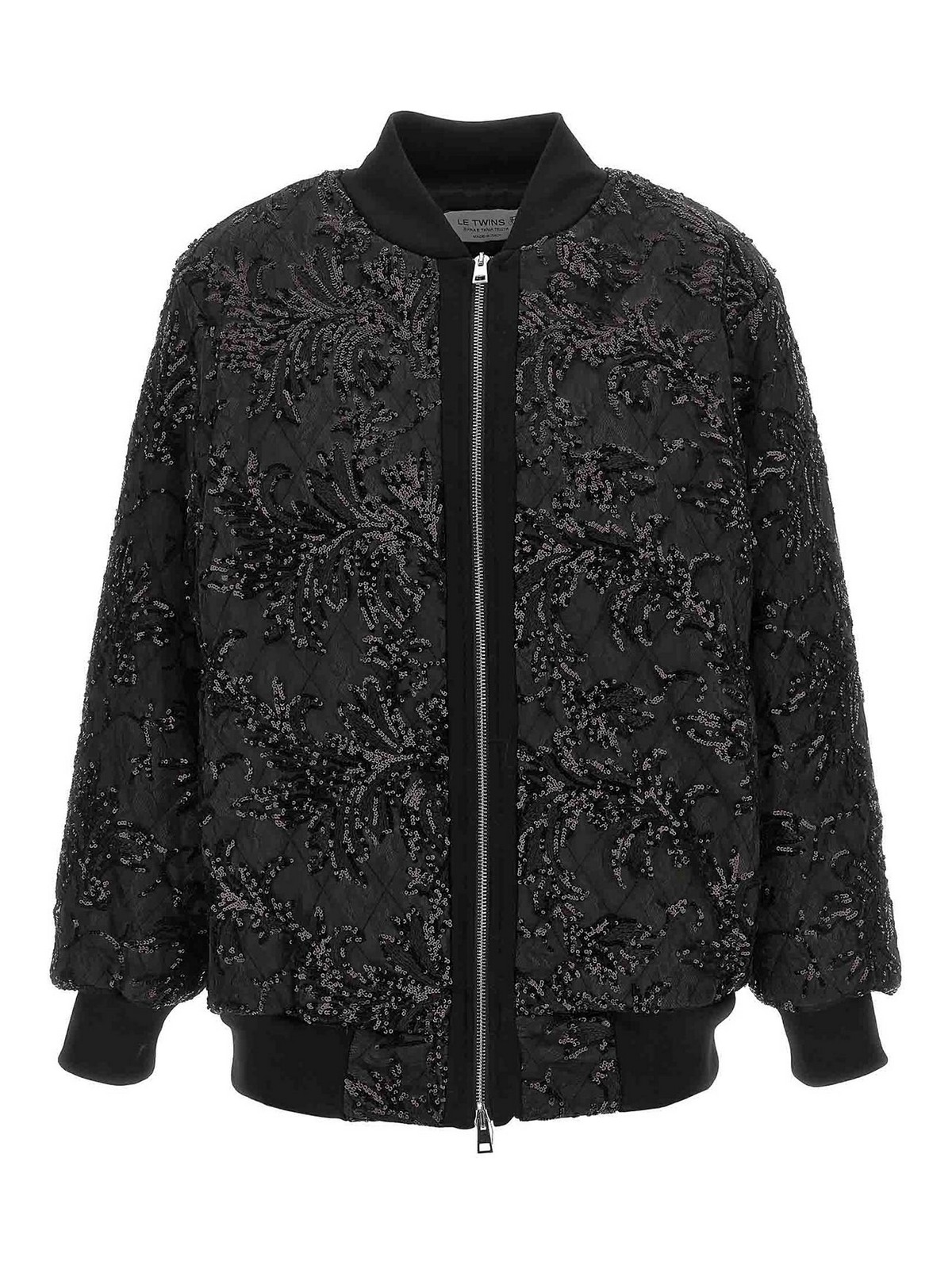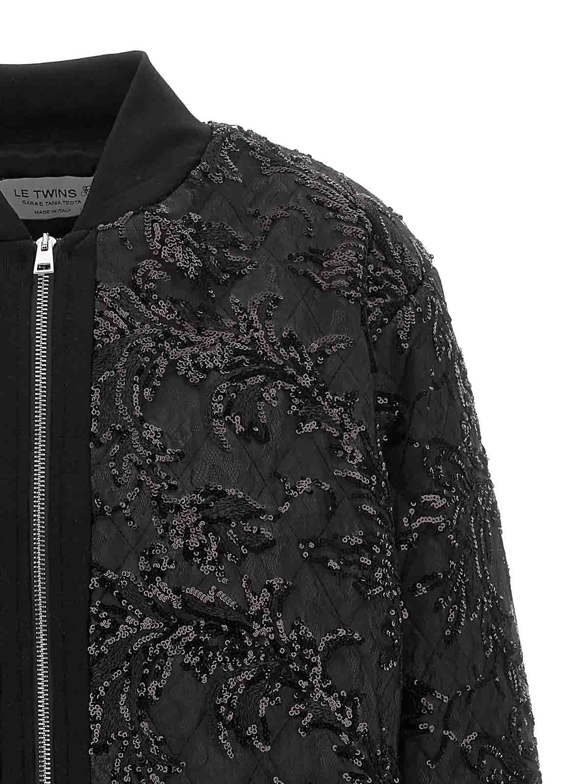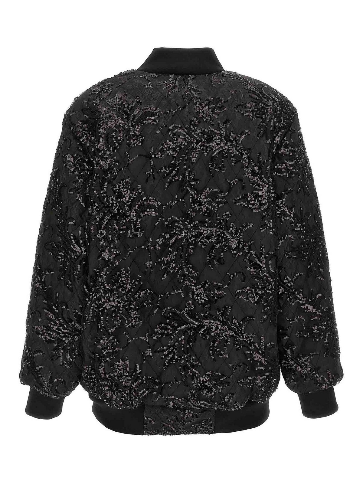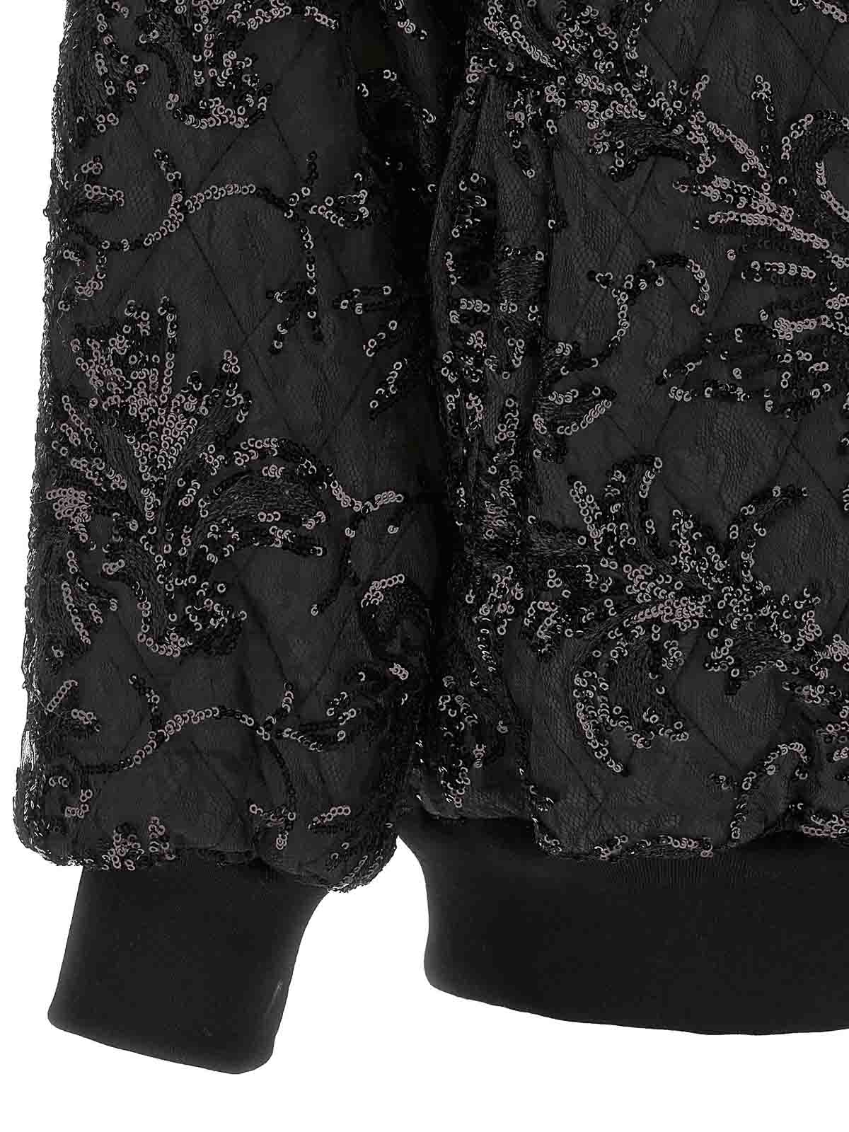 Belluno' bomber jacket in quilted fabric covered in lace with all-over sequin appliqu, front zip closure, pockets, long cuffed sleeves.
