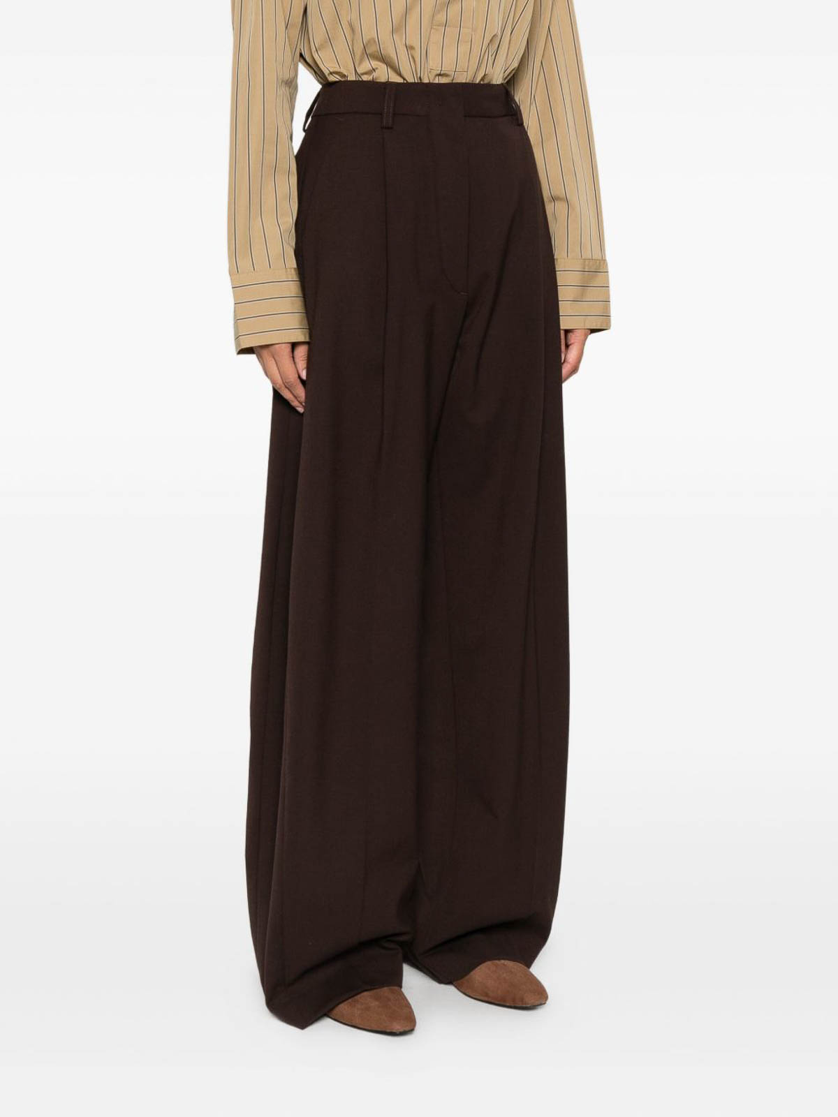 Brown pleated front wide leg high waist straight hem concealed zip fly