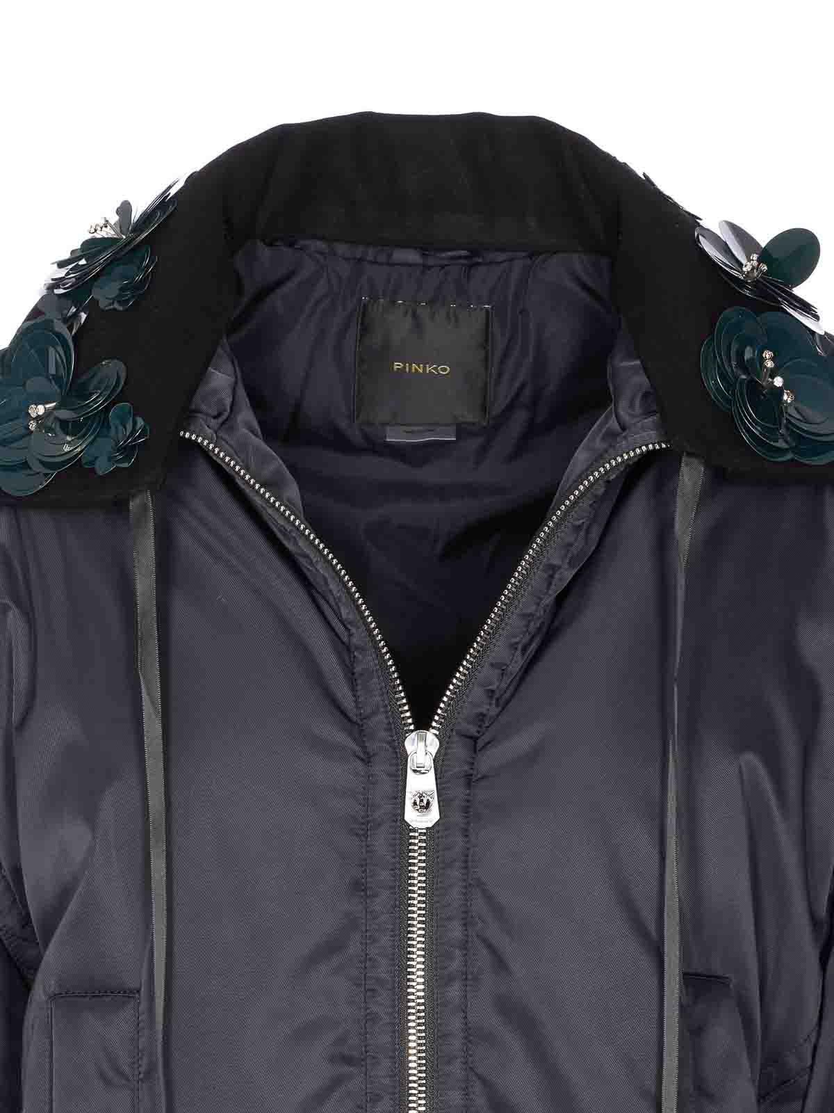 Pinko black clarina padded jacket with frontal zip closure, pockets, regular with application sequins, elasticized on waist and cuffs , padded
