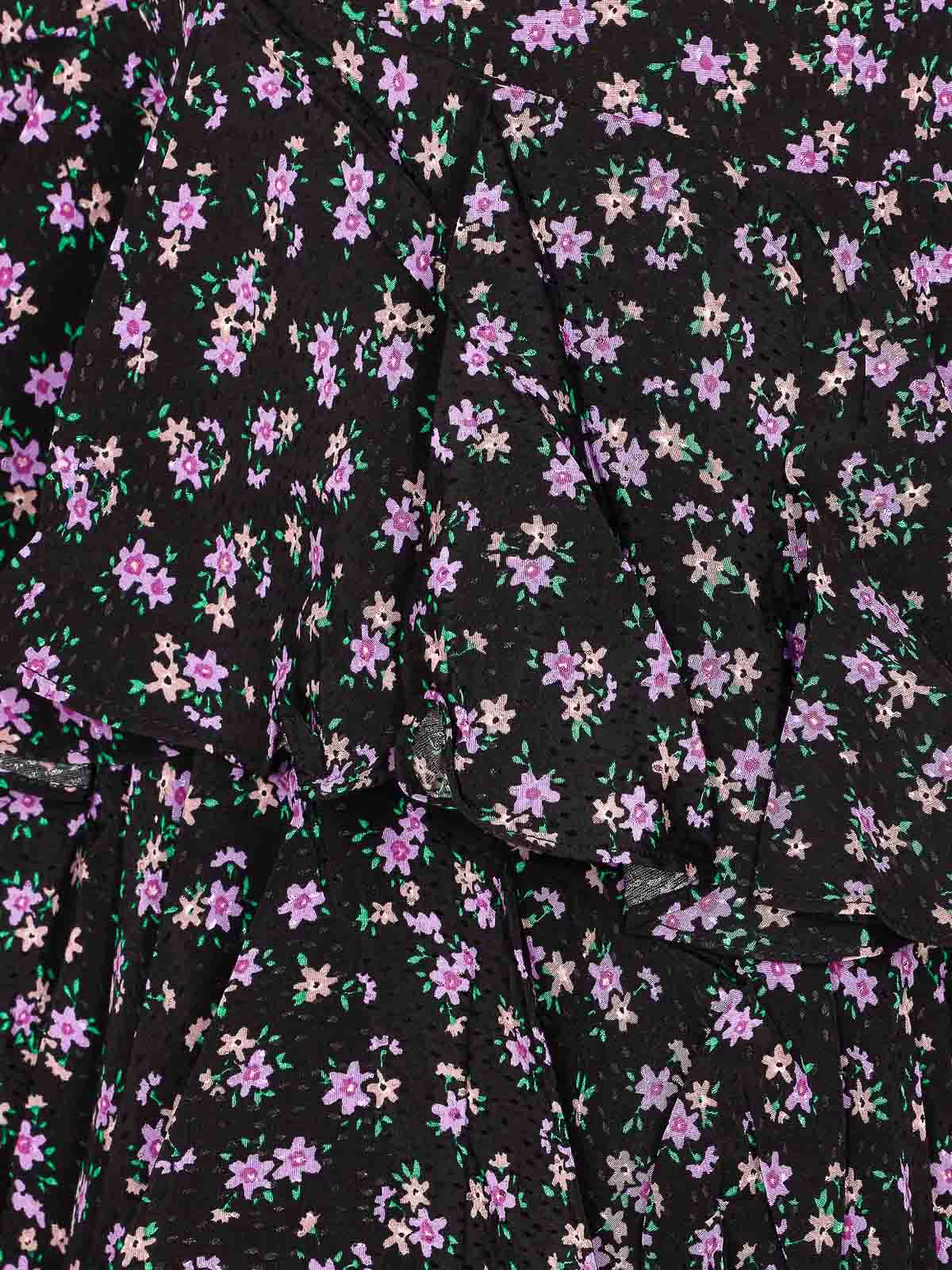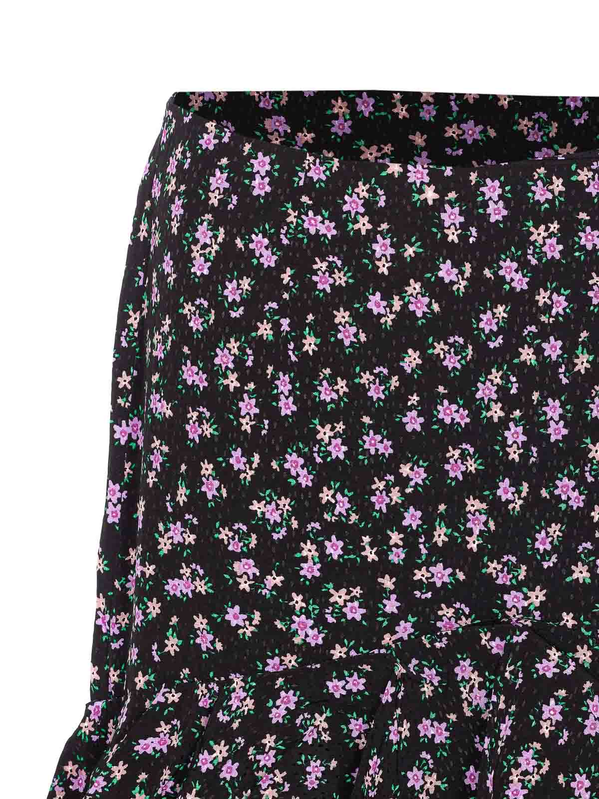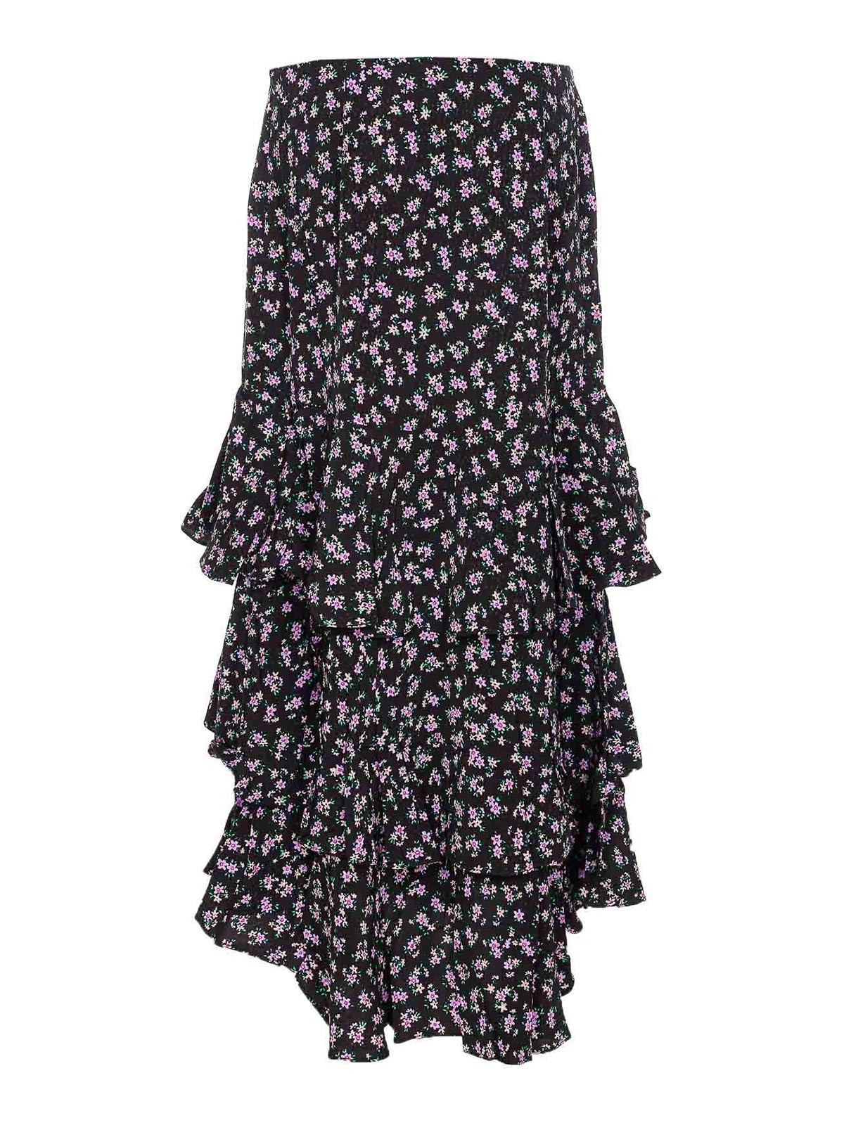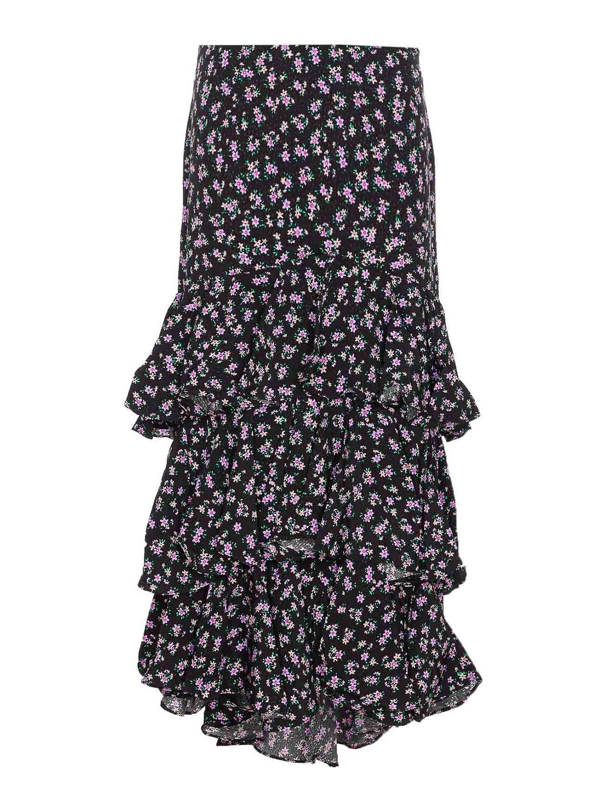Essentiel antwerp black ilana tiered ruffle skirt lateral zip and hook floral print midi model
