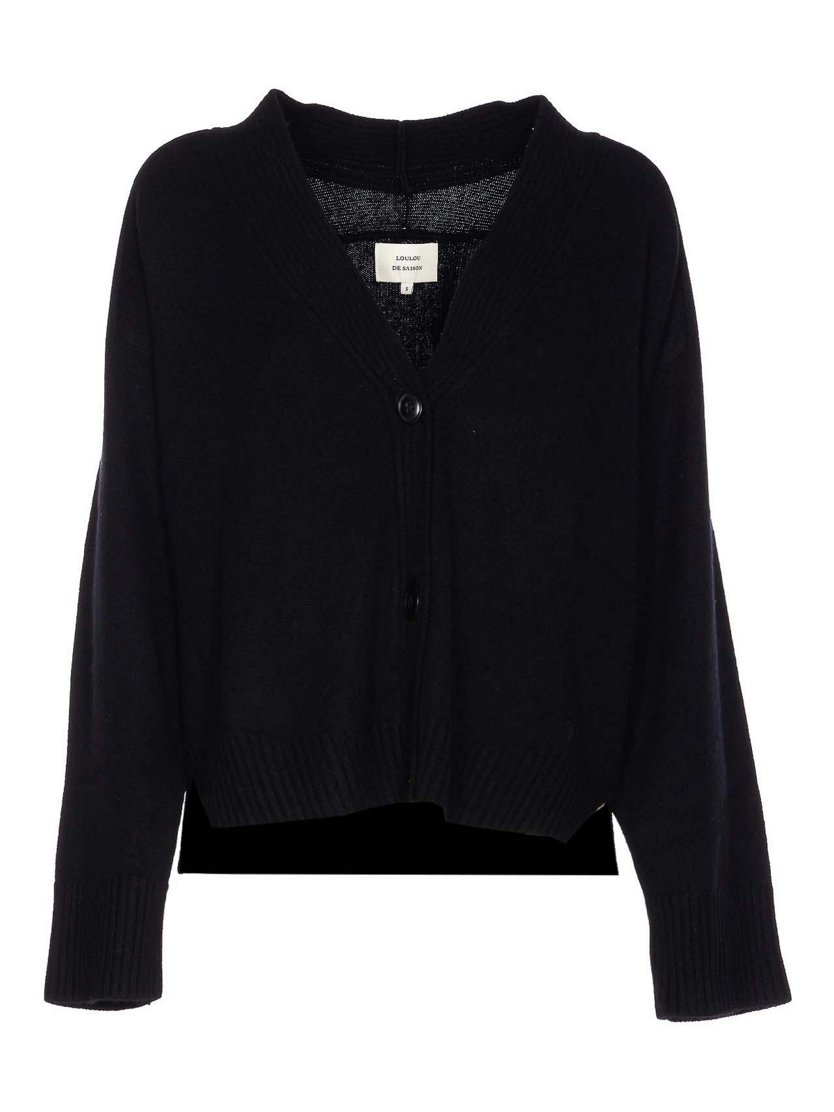 Loulou de saison black kaia cardigan with buttons v-neckline long sleeves