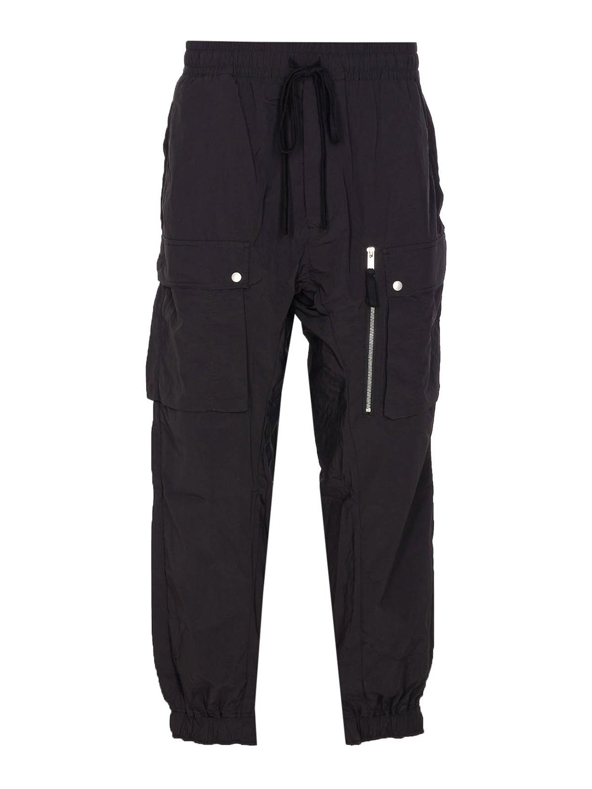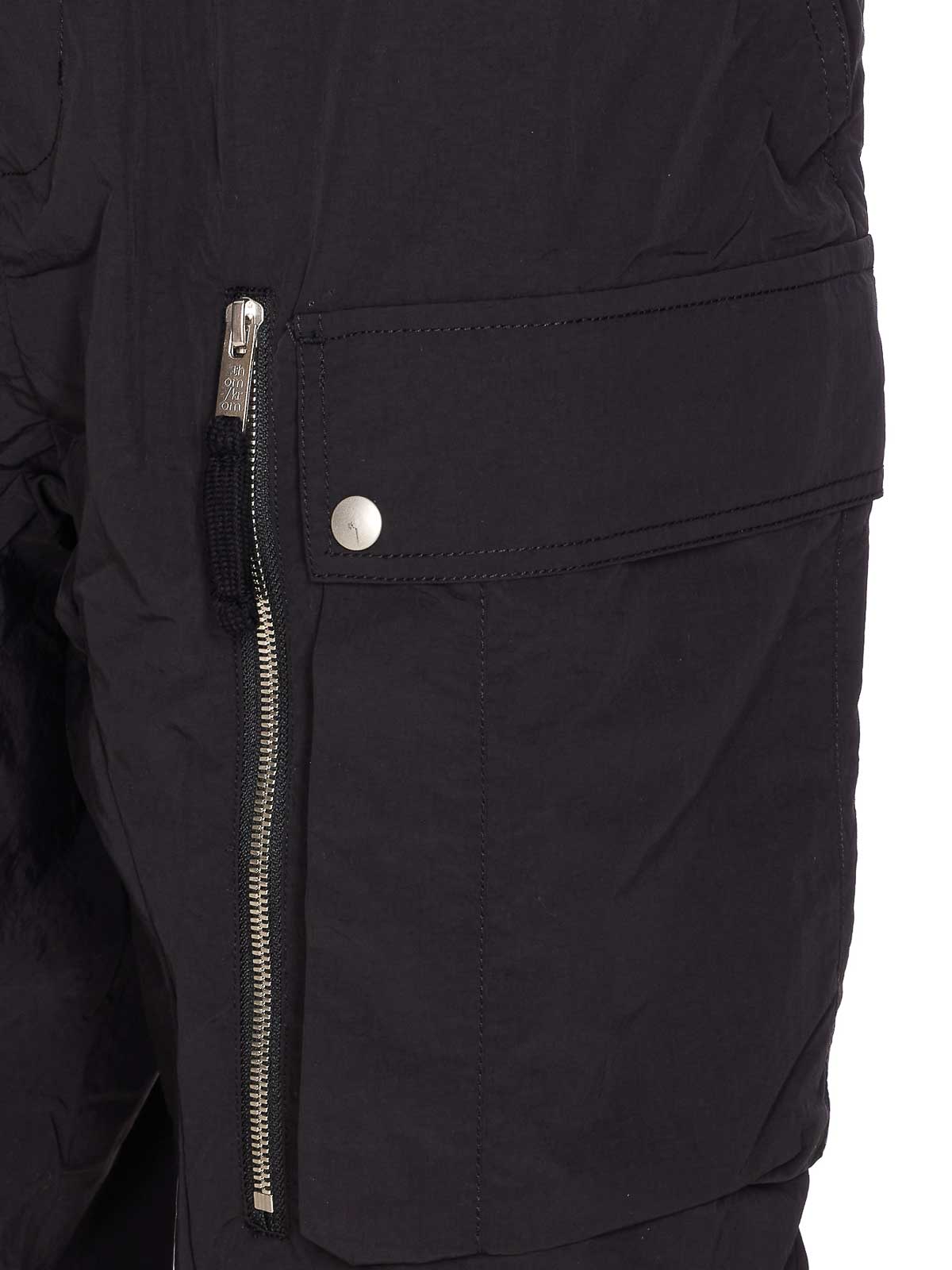 Thom krom black pants, elasticized on waist, coulisse closure, lateral pockets, zip pockets, nylon effect